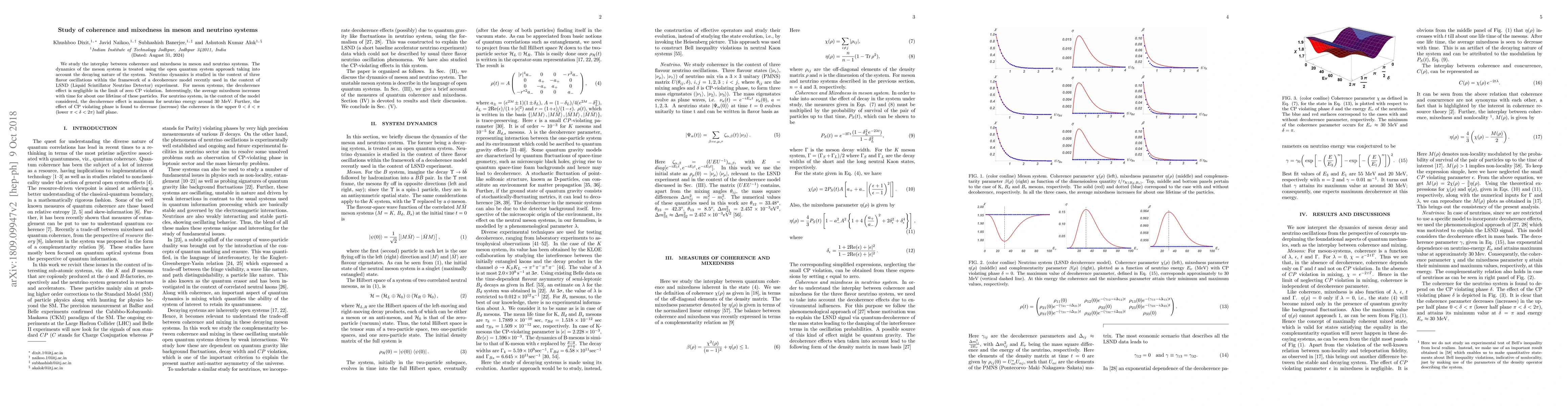 This study investigates the interplay between coherence and mixedness in meson and neutrino systems, employing open quantum system dynamics for mesons and a decoherence model for neutrino oscillations. The research finds that meson mixedness increases with time, while neutrino coherence is most affected at 30 MeV energy, with CP violation phases influencing coherence differently in distinct angular regions.