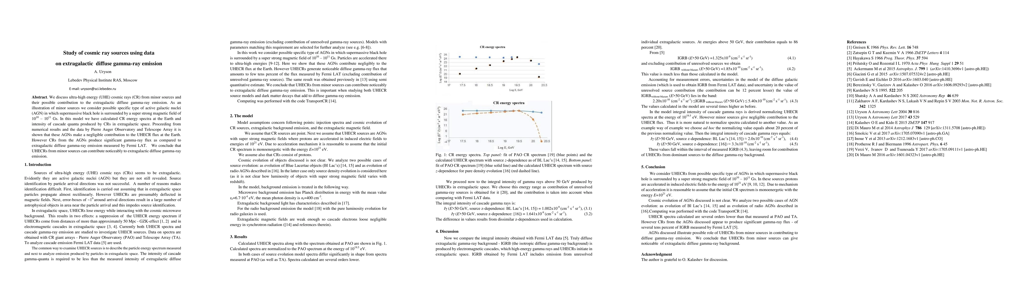 This study investigates ultra-high energy cosmic rays from minor sources, specifically certain types of active galactic nuclei with extreme magnetic fields, and their contribution to extragalactic diffuse gamma-ray emission. The research concludes that while these AGNs do not significantly contribute to the UHECR flux at Earth, they do produce a notable gamma-ray flux compared to the diffuse emission measured by Fermi LAT.