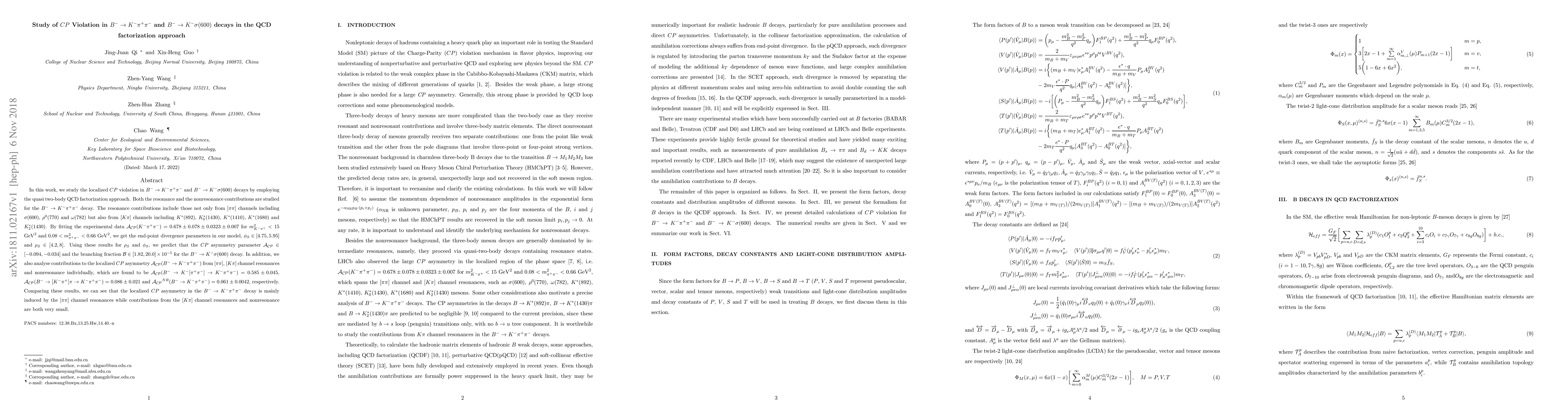$\mathcal{A_{CP}}(K^-\pi^+\pi^-)=0.678\pm0.078\pm0.0323\pm0.007$ for