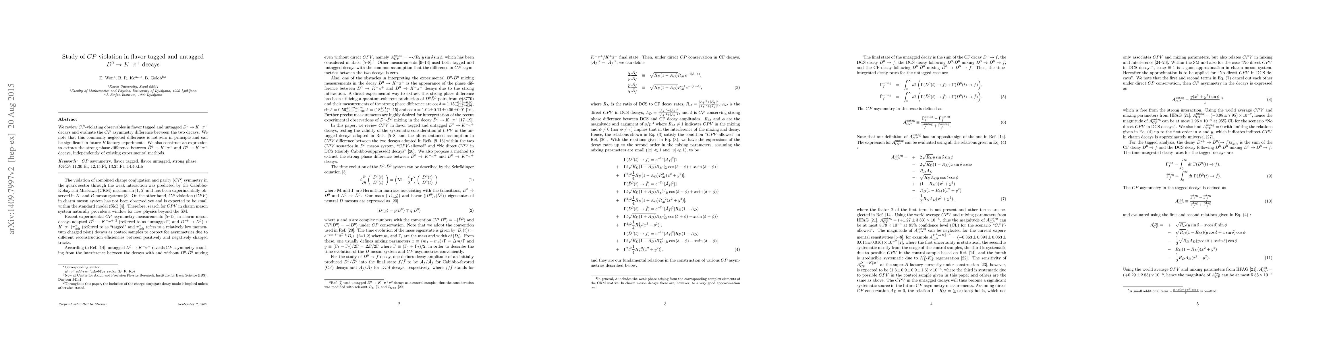Researchers studied $CP$ violation in $D^0 ightarrow K^{-} heta+$ decays, finding a non-zero difference between flavor-tagged and untagged decays with potential implications for future experiments.
