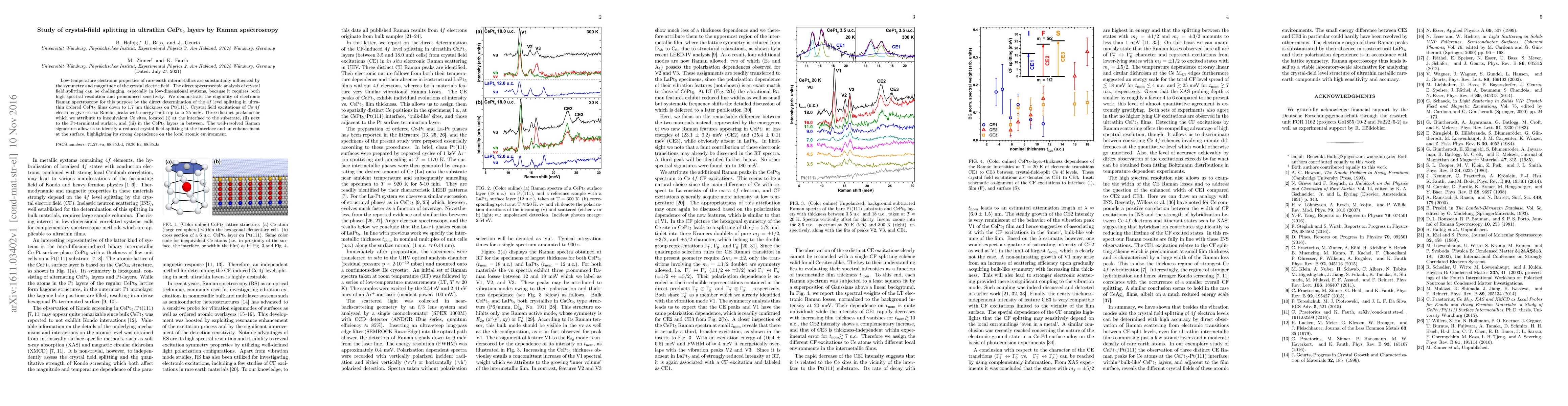 The study uses Raman spectroscopy to directly measure crystal field splitting in ultrathin CePt5 layers, revealing distinct Raman peaks corresponding to different Ce sites. This methodology highlights the strong dependence of crystal field splitting on local atomic environment, identifying reduced splitting at the interface and enhanced splitting at the surface.