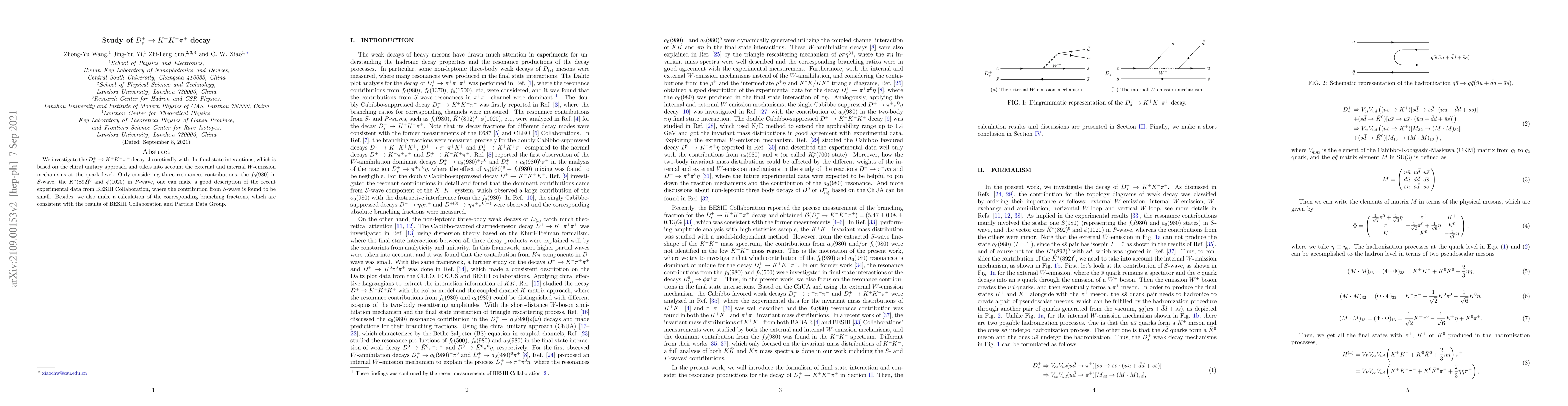 This study uses the chiral unitary approach to theoretically analyze the $D_{s}^{+} \rightarrow K^{+} K^{-} \pi^{+}$ decay, focusing on final state interactions and $W$-emission mechanisms. The analysis, which includes contributions from three resonances, aligns well with recent experimental data from the BESIII Collaboration and predicts branching fractions consistent with the Particle Data Group.