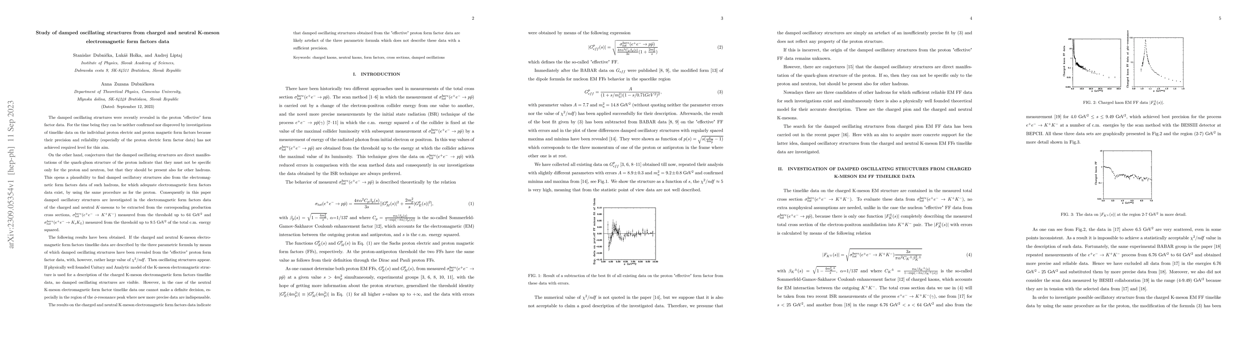 This study investigates damped oscillating structures (OS) in the electromagnetic form factors (EM FFs) of charged and neutral K-mesons, finding OS when using a three-parametric formula but not with a physically well-founded Unitary and Analytic model, suggesting the OS in proton data may be an artifact of the formula used.