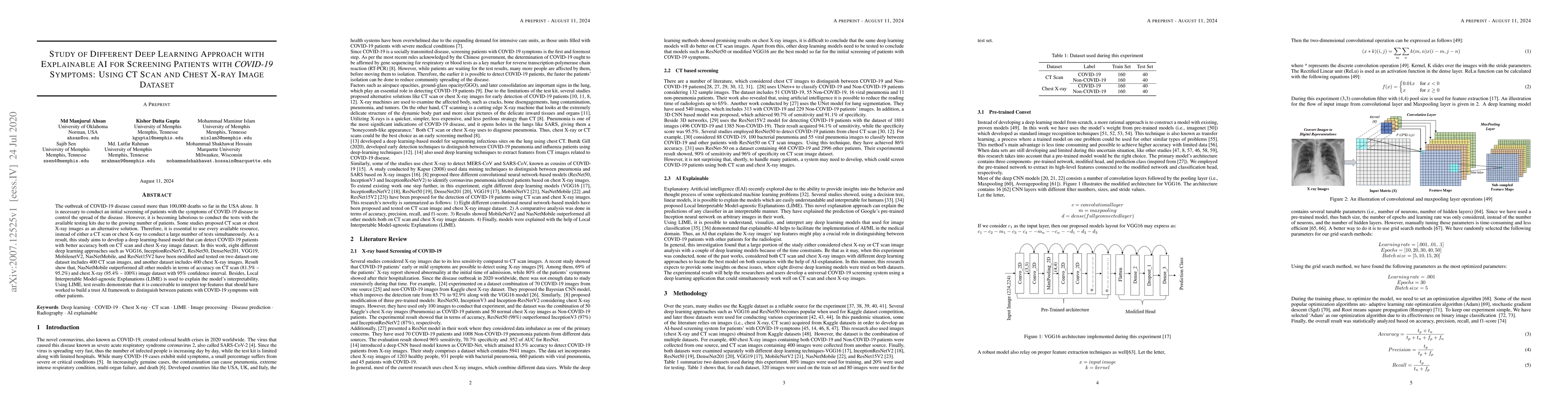 This study evaluates eight deep learning models for detecting COVID-19 from CT scan and chest X-ray images, aiming to improve screening efficiency. The models tested include VGG16, InceptionResNetV2, ResNet50, DenseNet201, VGG19, MobilenetV2, NasNetMobile, and ResNet15V2, with Local Interpretable Model-agnostic Explanations (LIME) used to enhance model interpretability.