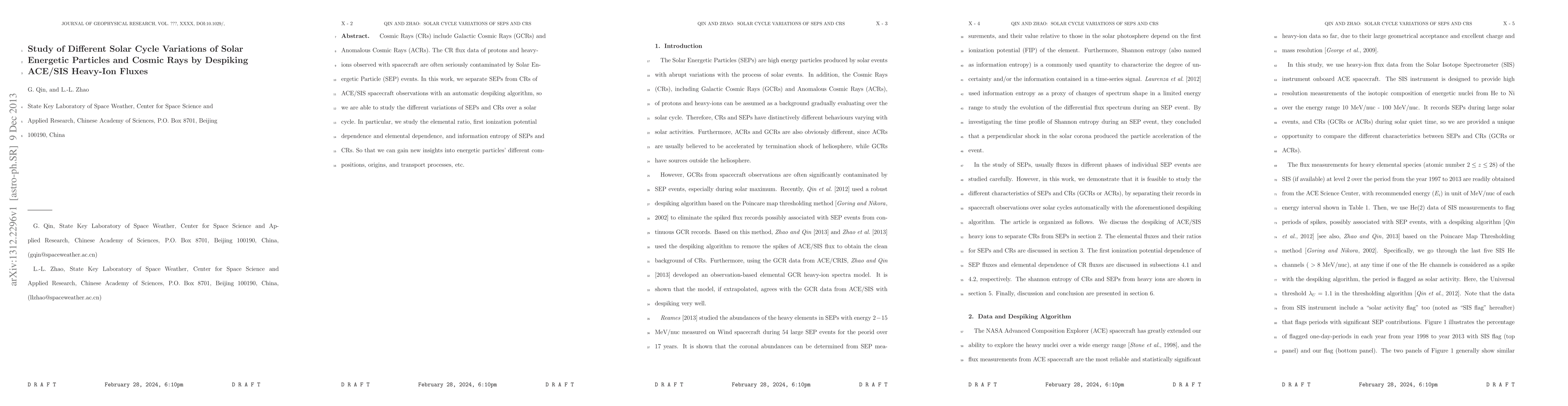 Cosmic Rays (CRs) include Galactic Cosmic Rays (GCRs) and Anomalous Cosmic Rays (ACRs). The CR flux data of protons and heavy-ions observed with spacecraft are often seriously contaminated by Solar Energetic Particle (SEP) events. In this work, we separate SEPs from CRs of ACE/SIS spacecraft observations with an automatic despiking algorithm, so we are able to study the different variations of SEPs and CRs over a solar cycle. In particular, we study the elemental ratio, first ionization potential dependence and elemental dependence, and information entropy of SEPs and CRs. So that we can gain new insights into energetic particles' different compositions, origins, and transport processes, etc.