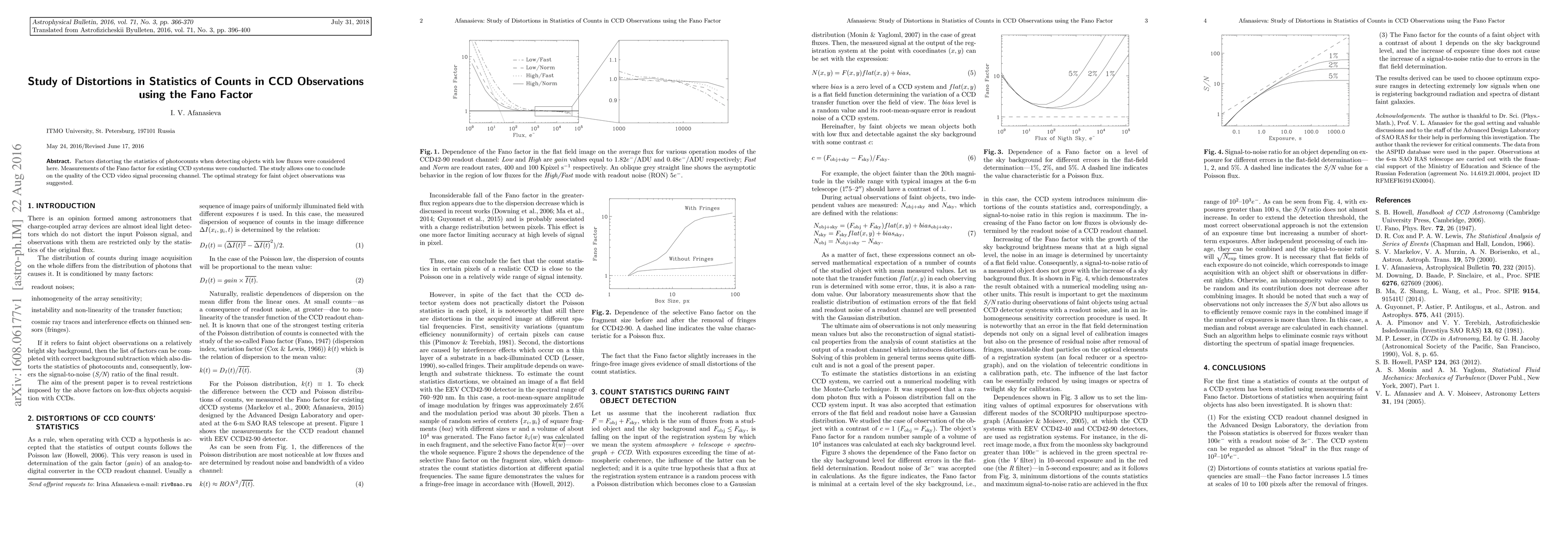 This study investigates distortions in statistics of photocounts from CCD observations and identifies factors that affect low-flux observations. It provides an optimal strategy for faint object observations based on Fano factor measurements.