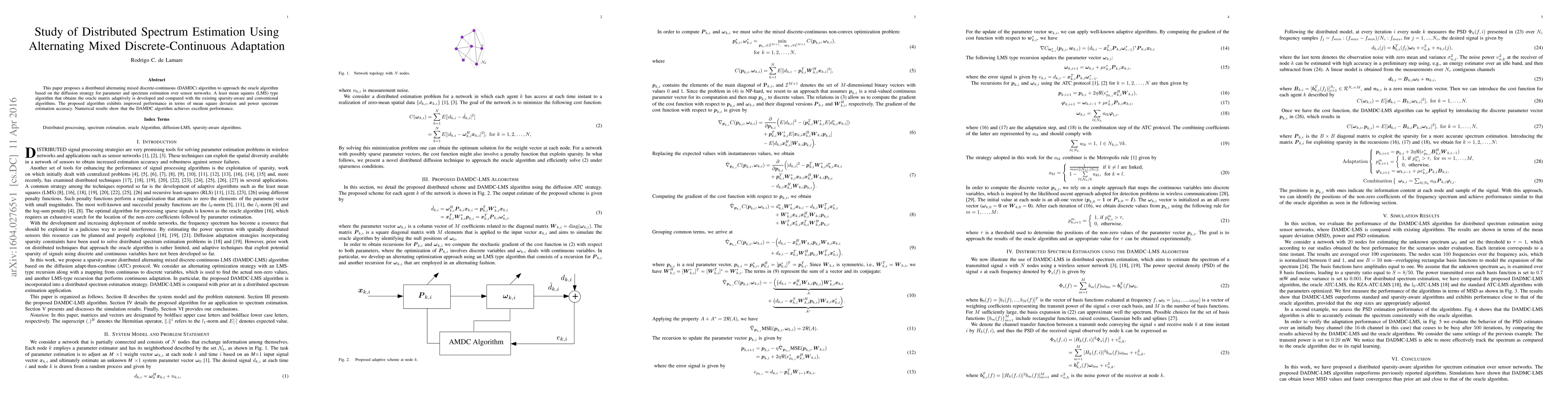 This paper proposes a distributed alternating mixed discrete-continuous (DAMDC) algorithm to approach the oracle algorithm based on the diffusion strategy for parameter and spectrum estimation over sensor networks. A least mean squares (LMS) type algorithm that obtains the oracle matrix adaptively is developed and compared with the existing sparsity-aware and conventional algorithms. The proposed algorithm exhibits improved performance in terms of mean square deviation and power spectrum estimation accuracy. Numerical results show that the DAMDC algorithm achieves excellent performance.