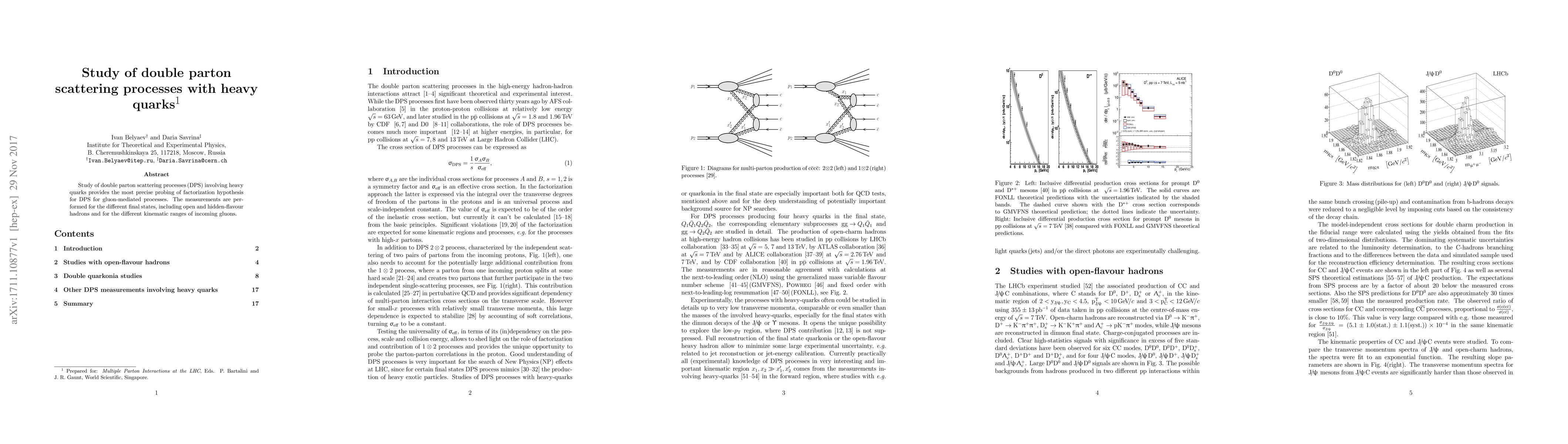 Study of double parton scattering processes (DPS) involving heavy quarks provides the most precise probing of factorization hypothesis for DPS for gluon-mediated processes. The measurements are performed for the different final states, including open and hidden-flavour hadrons and for the different kinematic ranges of incoming gluons