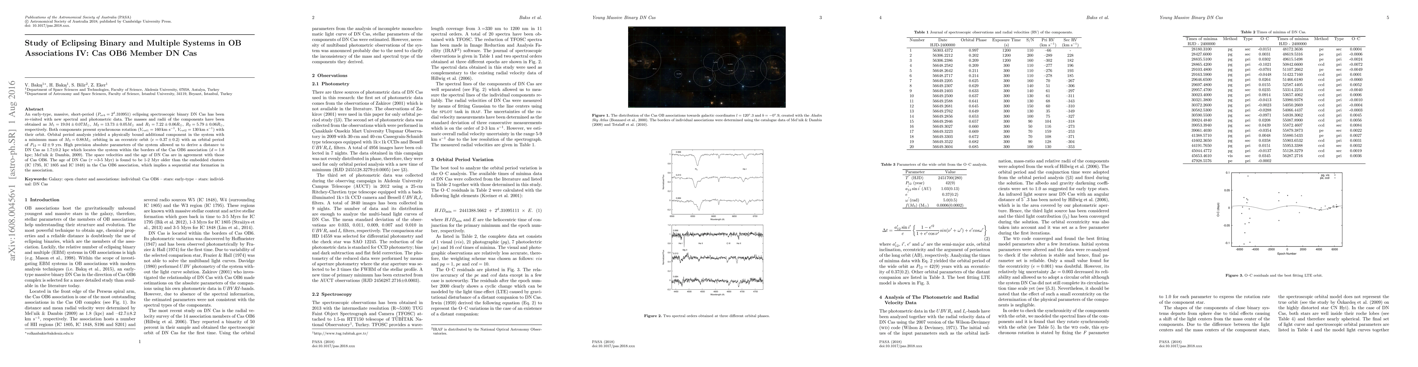 An early-type, massive, short-period ($P_{\rm orb}=2^{\rm d}.310951$) eclipsing spectroscopic binary DN Cas has been re-visited with new spectral and photometric data. The masses and radii of the components have been obtained as $M_1=19.04\pm0.07 M_\odot$, $M_2=13.73\pm 0.05M_\odot$ and $R_1=7.22\pm0.06 R_\odot$, $R_2=5.79\pm0.06R_\odot$, respectively. Both components present synchronous rotation ($V_{\rm rot1}=160\,$km s$^{-1}$, $V_{\rm rot2}=130\,$km s$^{-1}$) with their orbit. Orbital period analysis yielded a physically bound additional component in the system with a minimum mass of $M_3=0.88 M_\odot$ orbiting in an eccentric orbit ($e=0.37\pm0.2$) with an orbital period of $P_{12}=42\pm9$ yrs. High precision absolute parameters of the system allowed us to derive a distance to DN Cas as 1.7$\pm$0.2 kpc which locates the system within the borders of the Cas OB6 association (d=1.8 kpc; Mel'nik & Dambis, 2009). The space velocities and the age of DN Cas are in agreement with those of Cas OB6. The age of DN Cas ($\tau=$3-5 Myr) is found to be 1-2 Myr older than the embedded clusters (IC 1795, IC 1805 and IC 1848) in the Cas OB6 association, which implies a sequential star formation in the association.