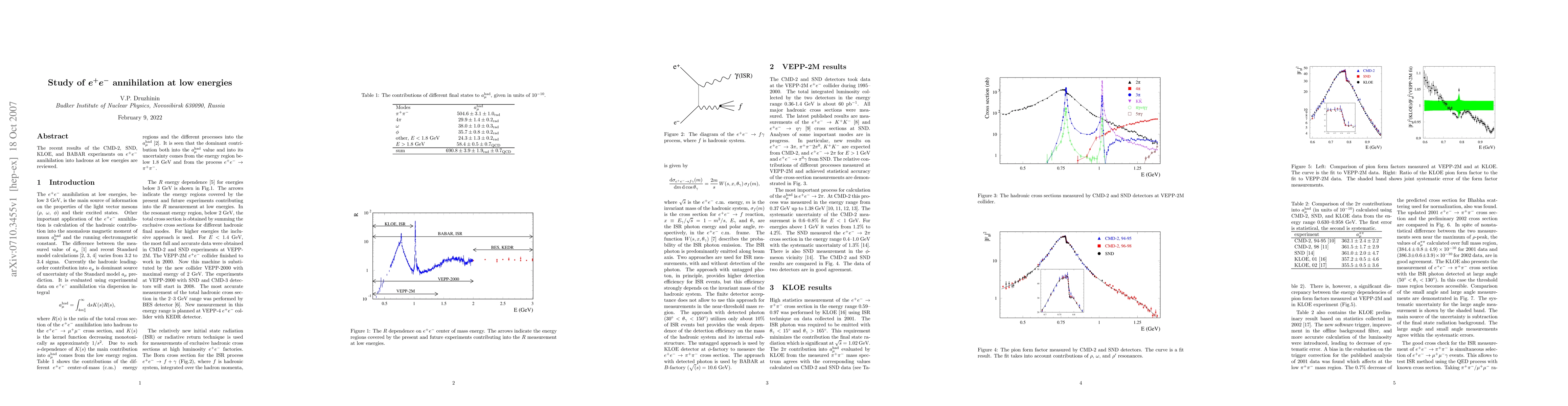 Summary: This paper reviews recent experimental results from CMD-2, SND, KLOE, and BABAR on electron-positron annihilation into hadrons at low energies, providing insights into fundamental particle interactions and cross-section measurements.
