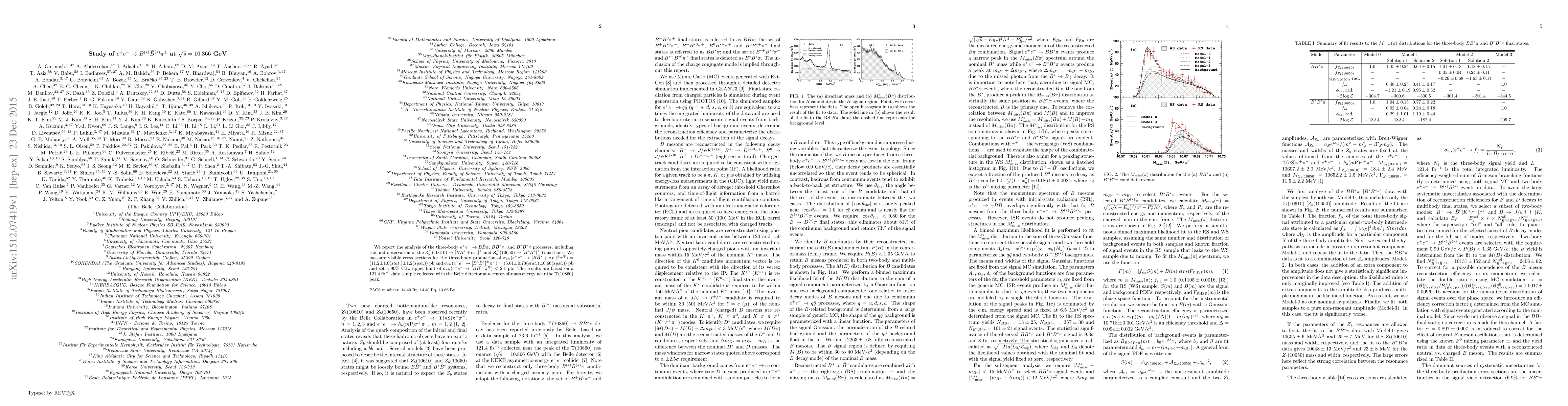 Researchers at Belle detector reported the first observation of new particle transitions in e+e- collisions, measuring visible cross sections for three-body production processes, with results providing insights into B-meson decays.