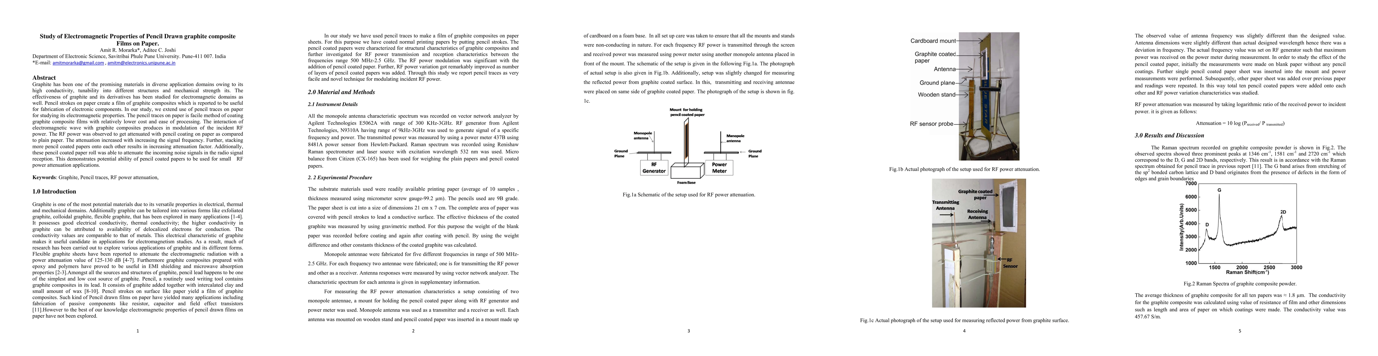 Graphite has been one of the promising materials in diverse application domains owing to its high conductivity, tunability into different structures and mechanical strength its. The effectiveness of graphite and its derivatives has been studied for electromagnetic domains as well. Pencil strokes on paper create a film of graphite composites which is reported to be useful for fabrication of electronic components. In our study, we extend use of pencil traces on paper for studying its electromagnetic properties. The pencil traces on paper is facile method of coating graphite composite films with relatively lower cost and ease of processing. The interaction of electromagnetic wave with graphite composites produces in modulation of the incident RF power. The RF power was observed to get attenuated with pencil coating on paper as compared to plain paper. The attenuation increased with increasing the signal frequency. Further, stacking more pencil coated papers onto each other results in increasing attenuation factor. Additionally, these pencil coated paper roll was able to attenuate the incoming noise signals in the radio signal reception. This demonstrates potential ability of pencil coated papers to be used for small RF power attenuation applications.