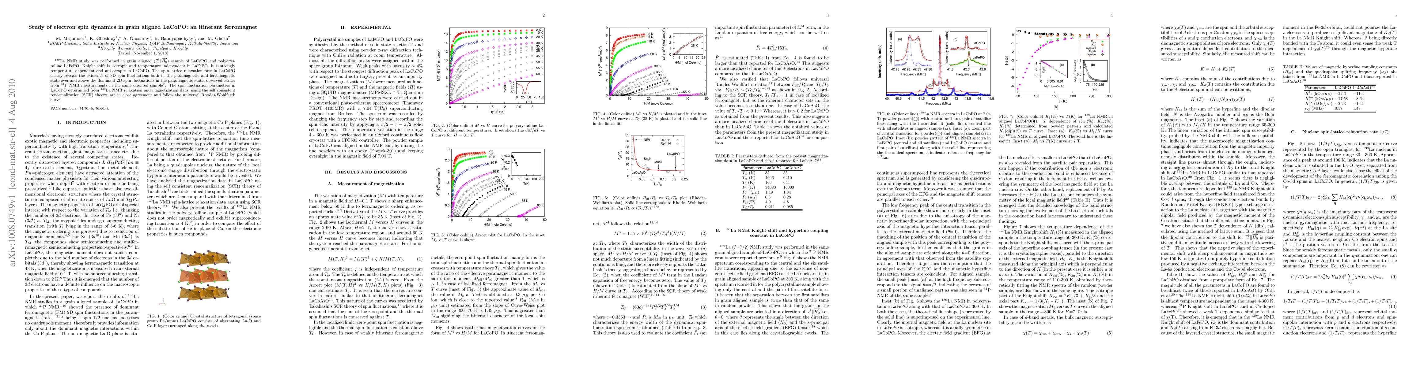 This study investigates electron spin dynamics in grain aligned LaCoPO using 139La NMR, revealing anisotropic and temperature-dependent Knight shift in LaCoPO compared to isotropic and temperature-independent behavior in LaFePO. The spin-lattice relaxation rate indicates the presence of three-dimensional spin fluctuations in LaCoPO, corroborated by self-consistent renormalization theory.