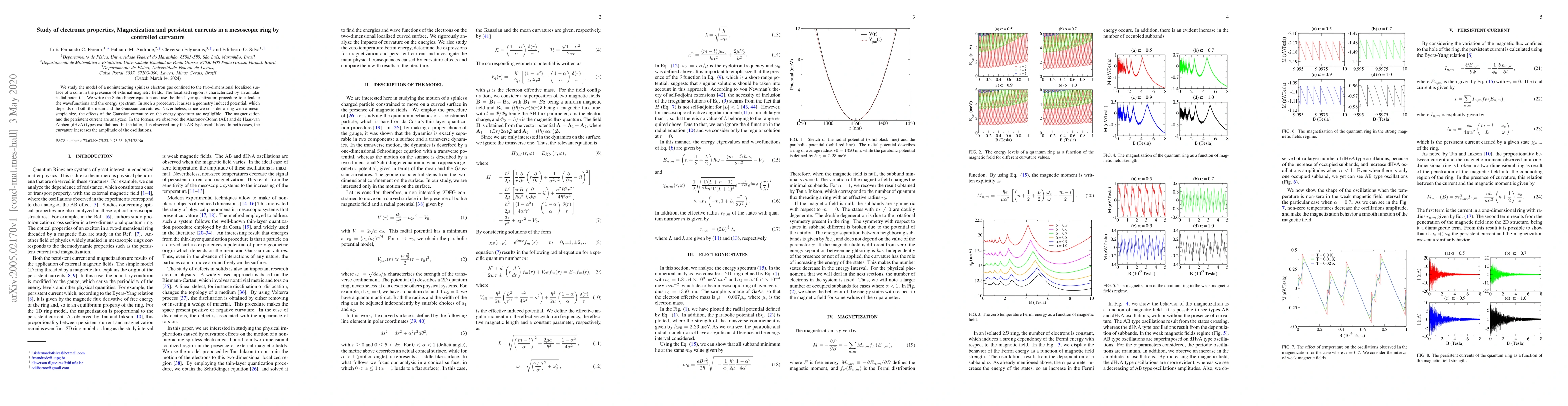 Researchers study how a magnetic field affects electrons in a ring-shaped material with varying curvature, finding increased oscillations in magnetization and persistent currents.
