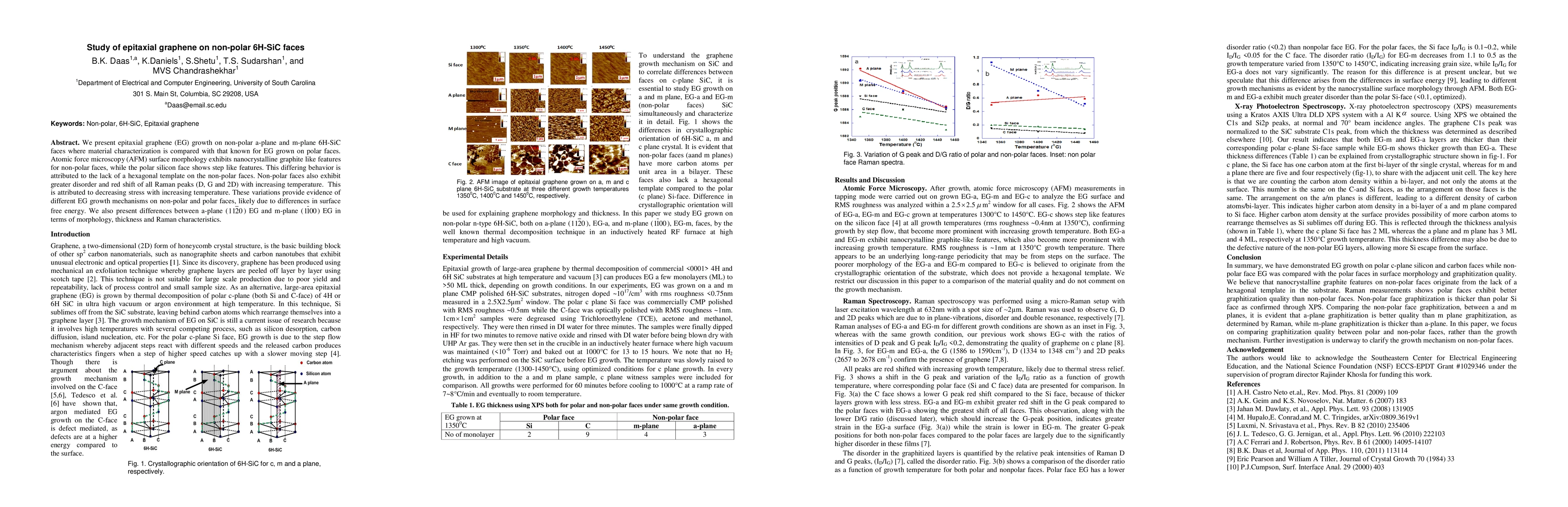 This study investigates the growth of epitaxial graphene on non-polar 6H-SiC faces, revealing nanocrystalline graphite features and greater disorder compared to polar faces, which exhibit step-like features. The differing growth mechanisms are attributed to variations in surface free energy and stress.