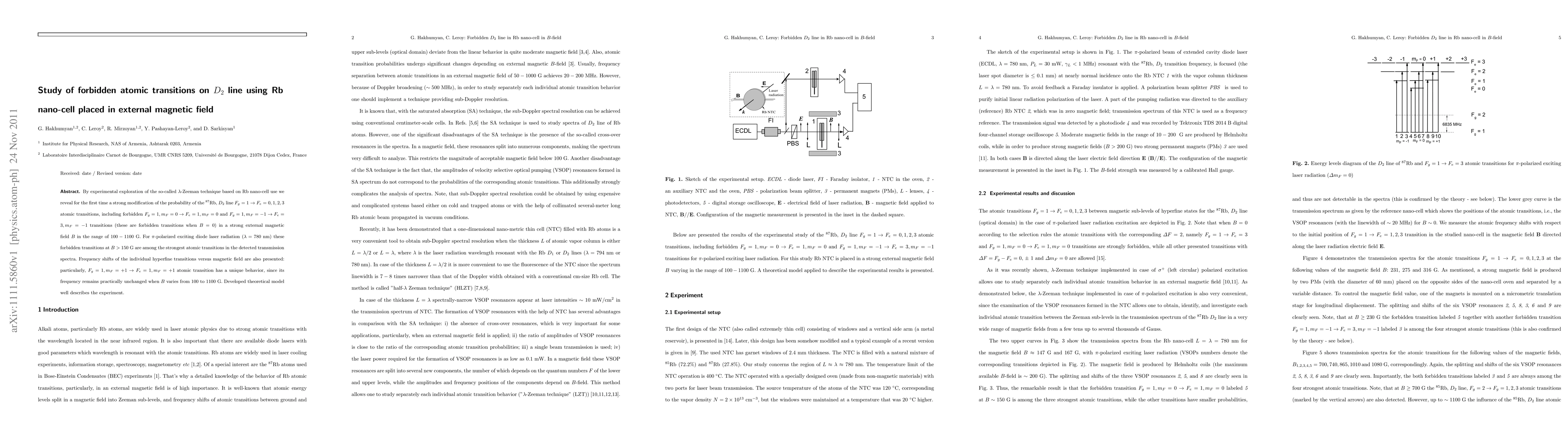By experimental exploration of the so-called $\lambda $-Zeeman technique based on Rb nano-cell use we reveal for the first time a strong modification of the probability of the $^{87}$Rb, $D_2$ line $F_g=1 \rightarrow F_e=0, 1, 2, 3$ atomic transitions, including forbidden $F_g=1, m_F =0 \rightarrow F_e=1, m_F =0$ and $F_g=1, m_F =-1 \rightarrow F_e=3, m_F =-1$ transitions (these are forbidden transitions when $B = 0$) in a strong external magnetic field $B$ in the range of 100 - 1100 G. For $\pi$-polarized exciting diode laser radiation ($\lambda = 780$ nm) these forbidden transitions at $B > 150$ G are among the strongest atomic transitions in the detected transmission spectra. Frequency shifts of the individual hyperfine transitions versus magnetic field are also presented: particularly, $F_g=1, m_F =+1 \rightarrow F_e=1, m_F =+1$ atomic transition has a unique behavior, since its frequency remains practically unchanged when $B$ varies from 100 to 1100 G. Developed theoretical model well describes the experiment.