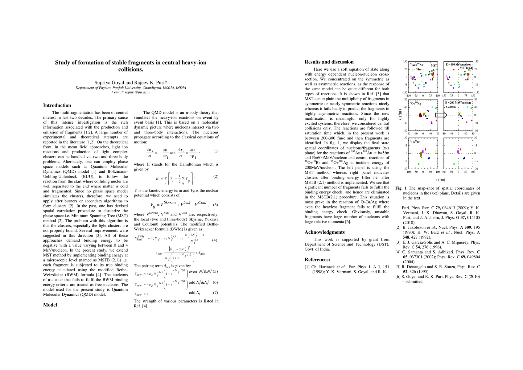 Summary: This study investigates the formation and stability of fragments in central heavy-ion collisions, employing microscopic binding energy criteria to assess fragment stability. The findings provide insights into the dynamics of nuclear fragmentation processes.