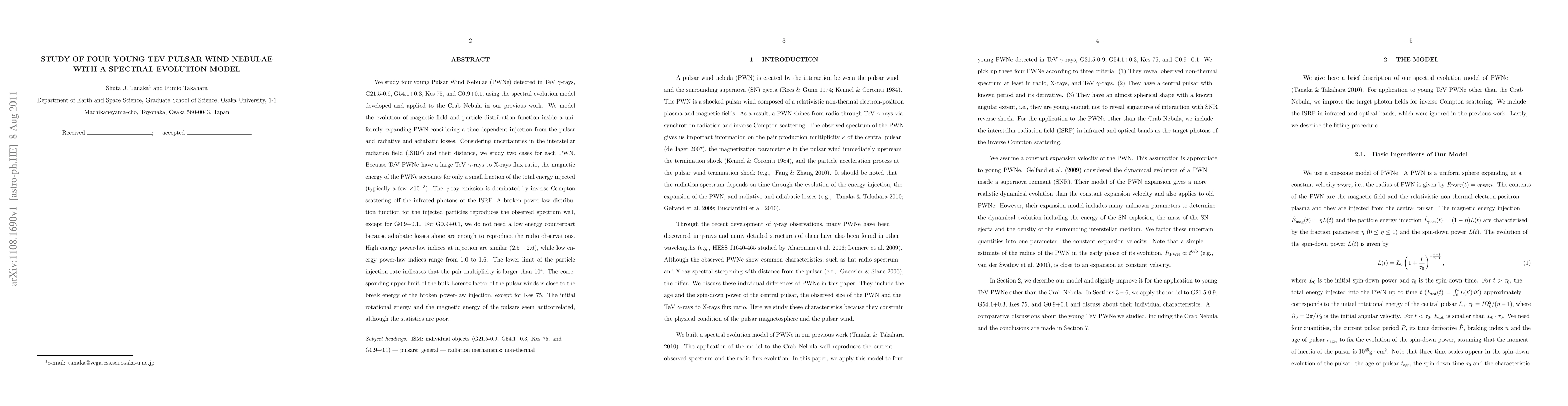 This study models four young TeV Pulsar Wind Nebulae (PWNe) using a spectral evolution model, finding that TeV gamma-ray emission is primarily from inverse Compton scattering off infrared photons. A broken power-law distribution function for injected particles reproduces observed spectra, except for G0.9+0.1. Particle injection rates suggest a high pair multiplicity, and the bulk Lorentz factor of pulsar winds is estimated.