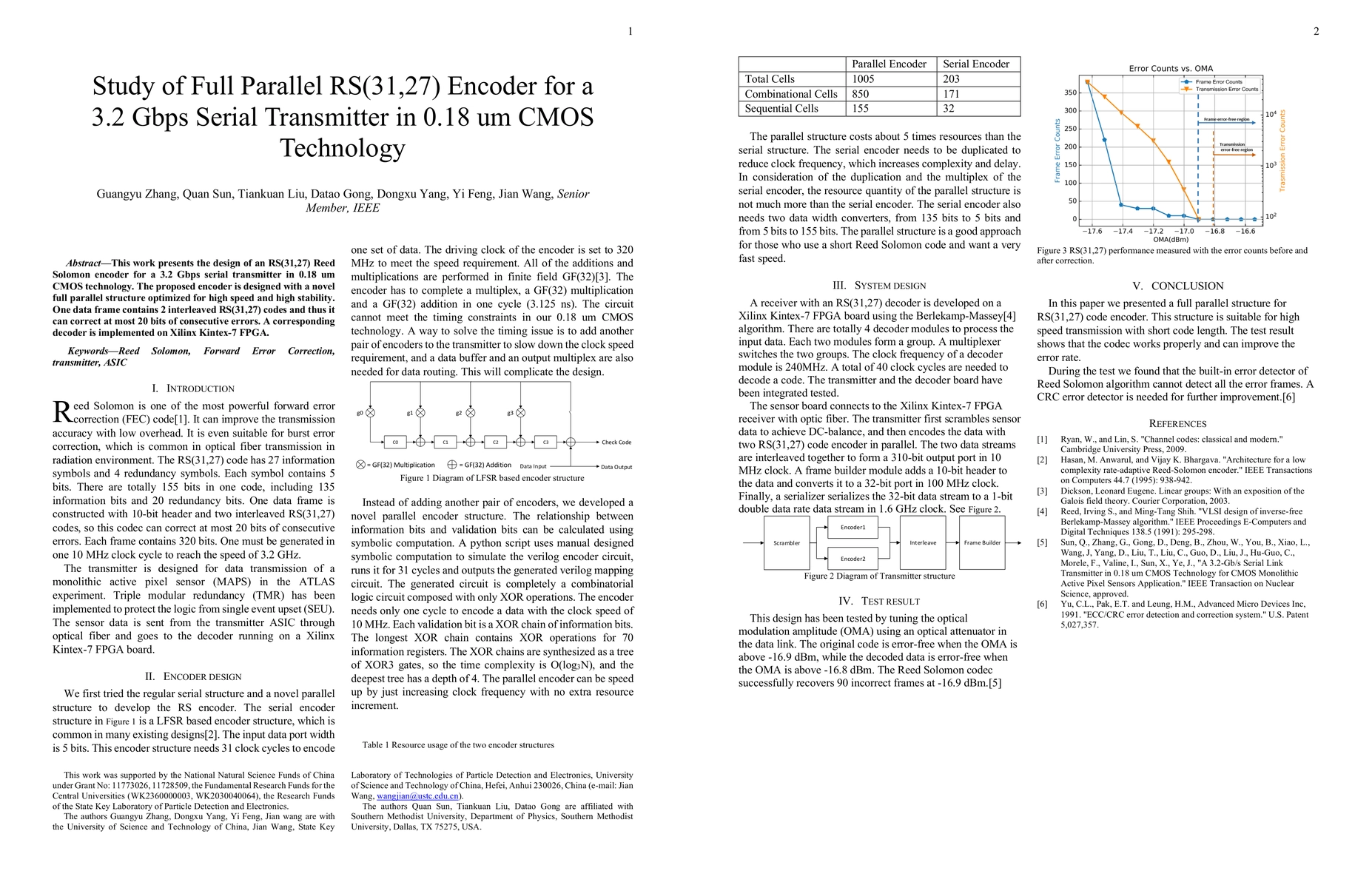 Researchers designed a high-speed Reed Solomon encoder for 3.2 Gbps serial transmission in 0.18 um CMOS technology, capable of correcting up to 20 consecutive errors.