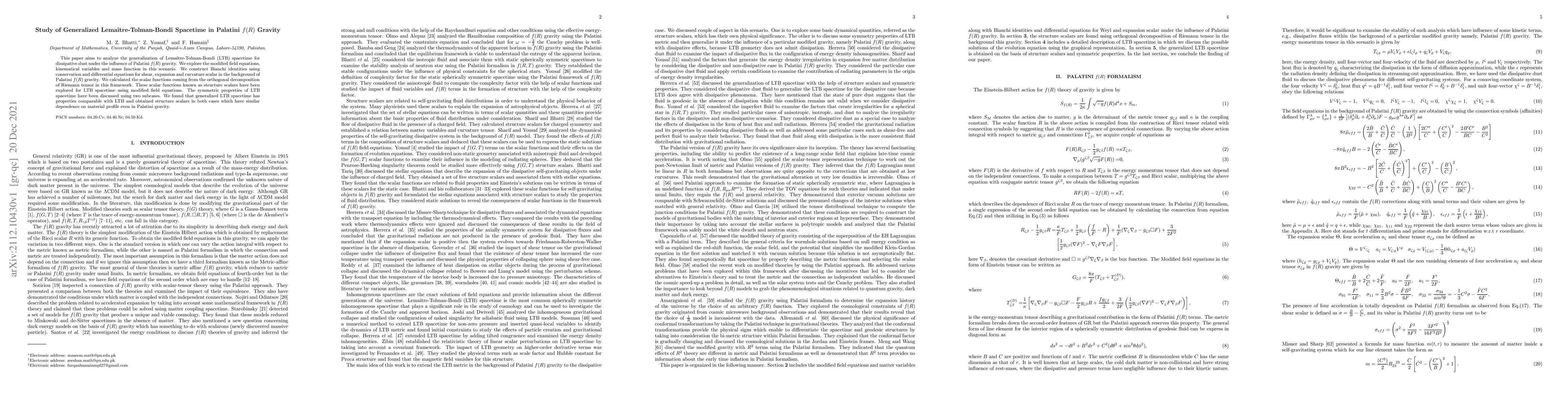 This paper aims to analyze the generalization of Lema\^{\i}tre-Tolman-Bondi (LTB) spacetime for dissipative dust under the influence of Palatini $f(R)$ gravity. We explore the modified field equations, kinematical variables, and mass function in this scenario. We construct Bianchi identities using conservation and differential equations for shear, expansion, and curvature scalar in the background of Palatini $f(R)$ gravity. We calculated the scalar functions coming from the orthogonal decomposition of the Riemann tensor in this framework. These scalar functions known as structure scalars have been explored for LTB spacetime using modified field equations. The symmetric properties of LTB spacetime have been discussed using two subcases. We found that generalized LTB spacetime has properties comparable with LTB and obtained structure scalars in both cases which have a similar dependence on a material profile even in Palatini gravity.