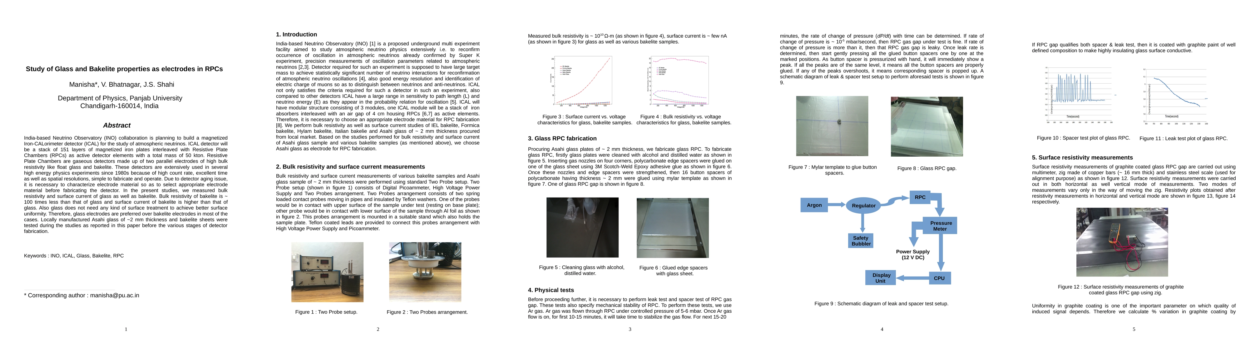This study evaluates the properties of glass and bakelite as electrode materials for Resistive Plate Chambers (RPCs) in the ICAL detector of the INO collaboration. Glass electrodes exhibit higher bulk resistivity and better surface uniformity, making them preferable over bakelite, which has lower resistivity and higher surface current, for use in the ICAL detector.