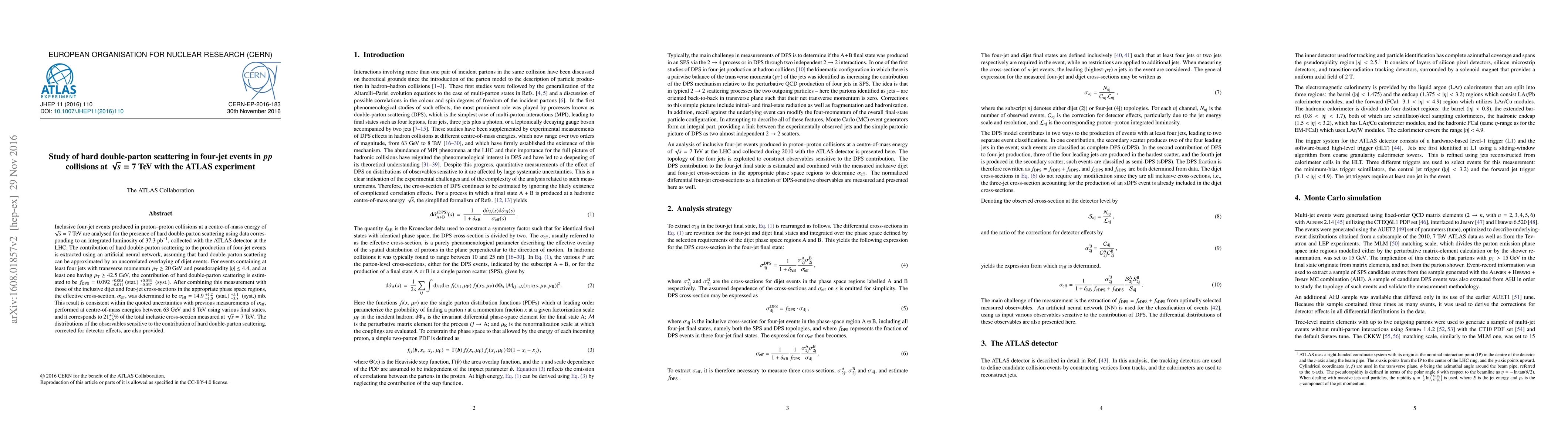 This study investigates hard double-parton scattering in four-jet events from $pp$ collisions at $\sqrt{s} = 7$ TeV using ATLAS data, estimating its contribution to be $f_{\mathrm{DPS}} = 0.092 \pm 0.048$ and determining $\sigma_{\mathrm{eff}} = 14.9 \pm 6.3$ mb, consistent with previous measurements.