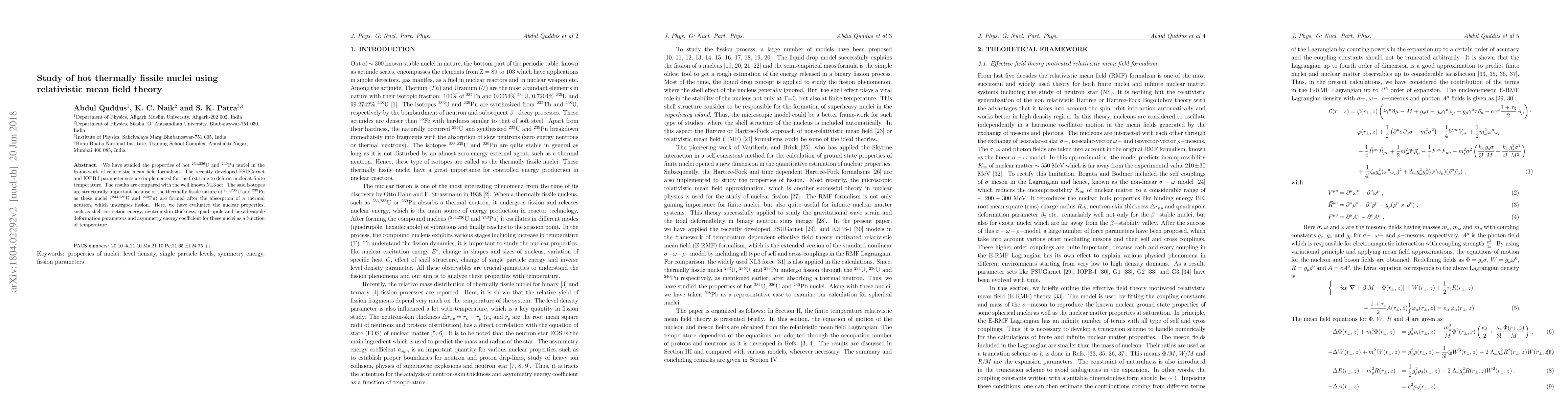 We have studied the properties of hot $^{234,236}$U and $^{240}$Pu nuclei in the framework of relativistic mean field formalism. The recently developed FSUGarnet and IOPB-I parameter sets are implemented for the first time to deform nuclei at finite temperature. The results are compared with the well-known NL3 set. The said isotopes are structurally important because of the thermally fissile nature of $^{233,235}$U and $^{239}$Pu as these nuclei ($^{234,236}$U and $^{240}$Pu) are formed after the absorption of a thermal neutron, which undergoes fission. Here, we have evaluated the nuclear properties, such as shell correction energy, neutron-skin thickness, quadrupole and hexadecapole deformation parameters and asymmetry energy coefficient for these nuclei as a function of temperature.