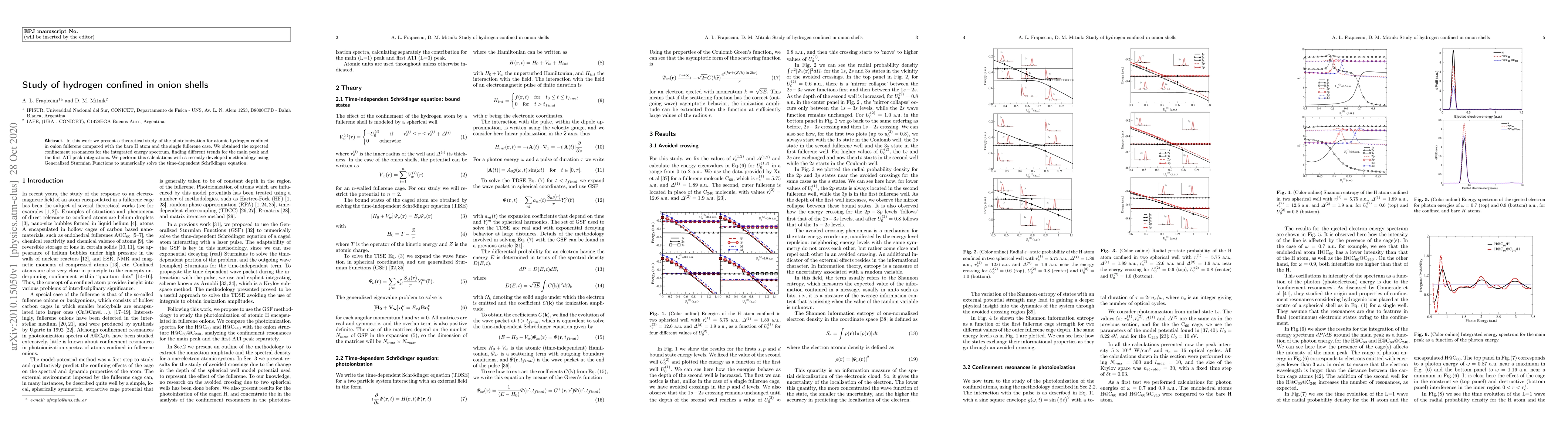Researchers studied how hydrogen behaves when trapped inside onion shells using a new method called Generalized Sturmian Functions, finding unique patterns in its behavior compared to free hydrogen atoms or single onions.