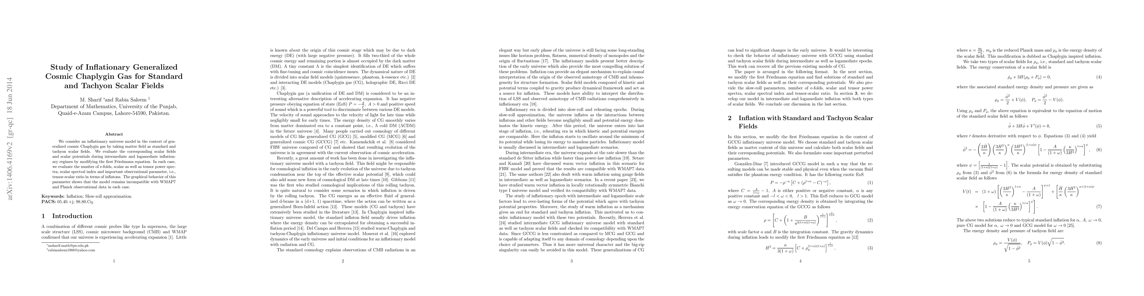 This paper explores an inflationary universe model using generalized cosmic Chaplygin gas with standard and tachyon scalar fields, evaluating their scalar fields, potentials, and power spectra. The study finds the model incompatible with WMAP7 and Planck observational data.