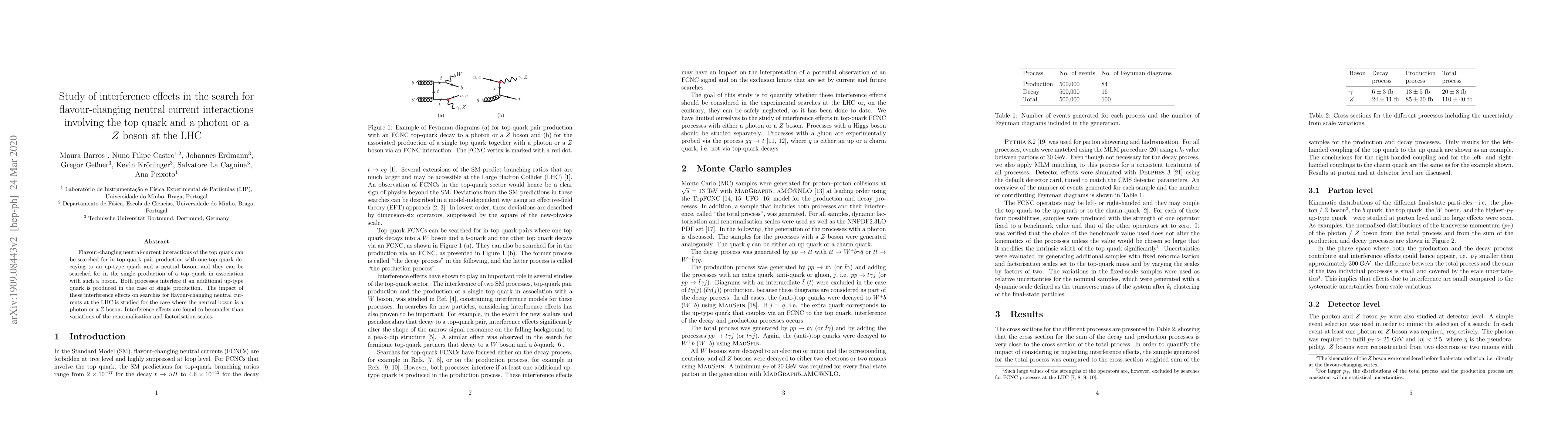This study investigates interference effects in searches for flavour-changing neutral current interactions involving the top quark and either a photon or a $Z$ boson at the LHC. It finds that these interference effects are smaller than variations in renormalisation and factorisation scales.
