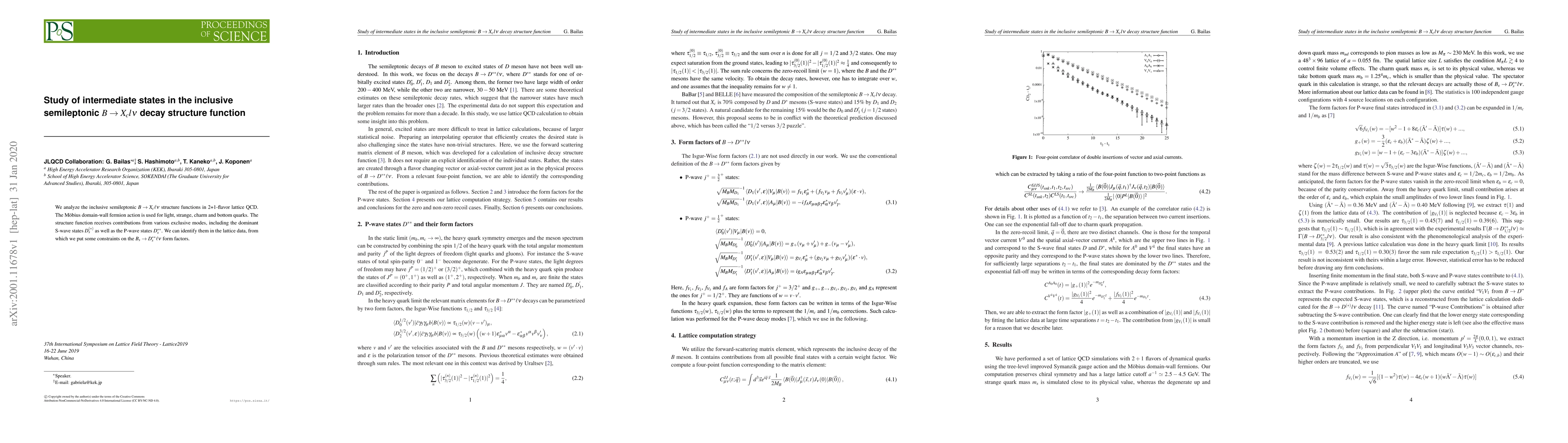 We analyze the inclusive semileptonic $B \to X_c \ell\nu$ structure functions in 2+1-flavor lattice QCD. The M\"obius domain-wall fermion action is used for light, strange, charm and bottom quarks. The structure function receives contributions from various exclusive modes, including the dominant S-wave states $D^{(*)}_s$ as well as the P-wave states $D_s^{**}$. We can identify them in the lattice data, from which we put some constraints on the $B_s \to D_s^{**}\ell\nu$ form factors.