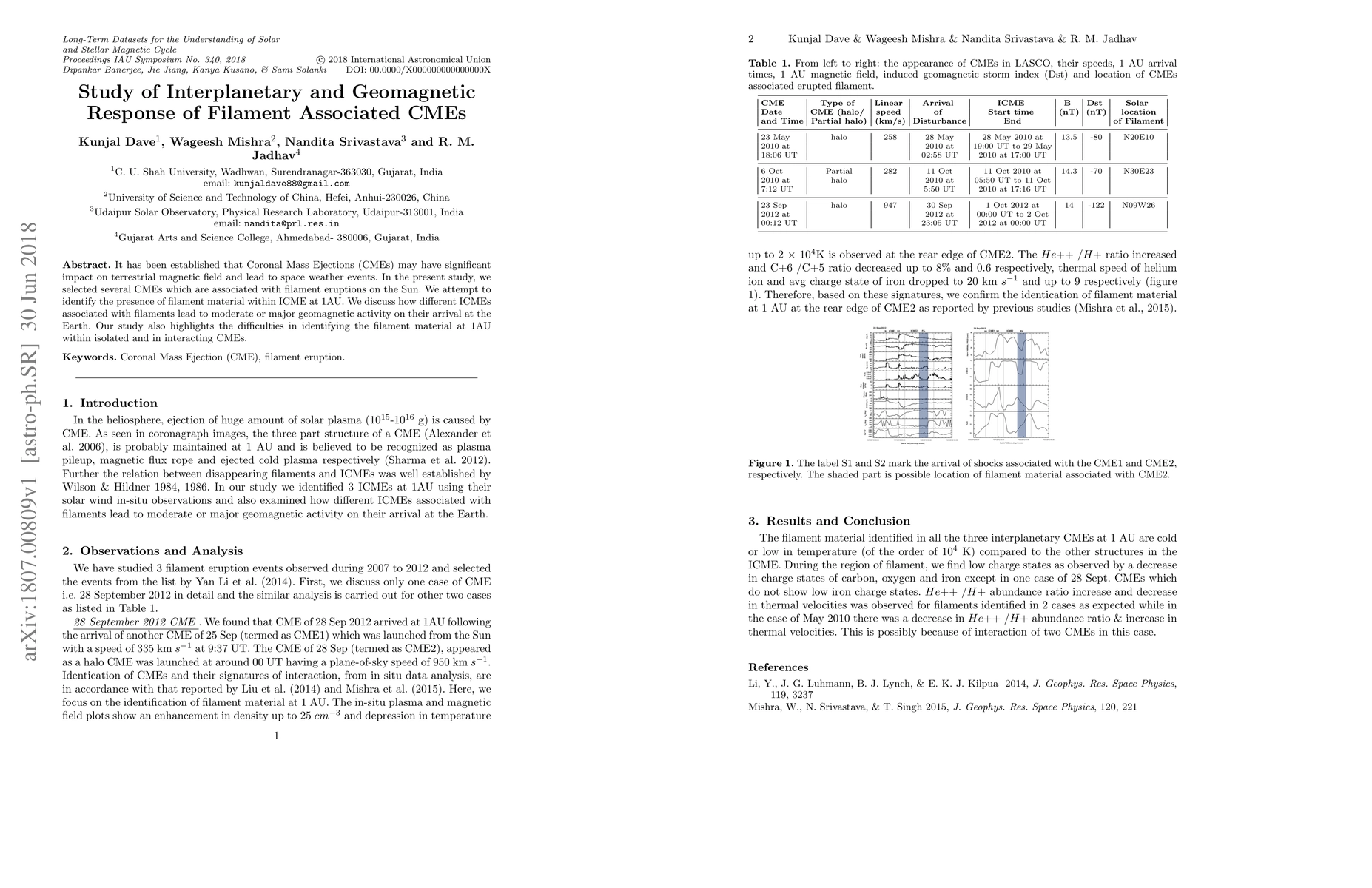 It has been established that Coronal Mass Ejections (CMEs) may have significant impact on terrestrial magnetic field and lead to space weather events. In the present study, we selected several CMEs which are associated with filament eruptions on the Sun. We attempt to identify the presence of filament material within ICME at 1AU. We discuss how different ICMEs associated with filaments lead to moderate or major geomagnetic activity on their arrival at the Earth. Our study also highlights the difficulties in identifying the filament material at 1AU within isolated and in interacting CMEs.