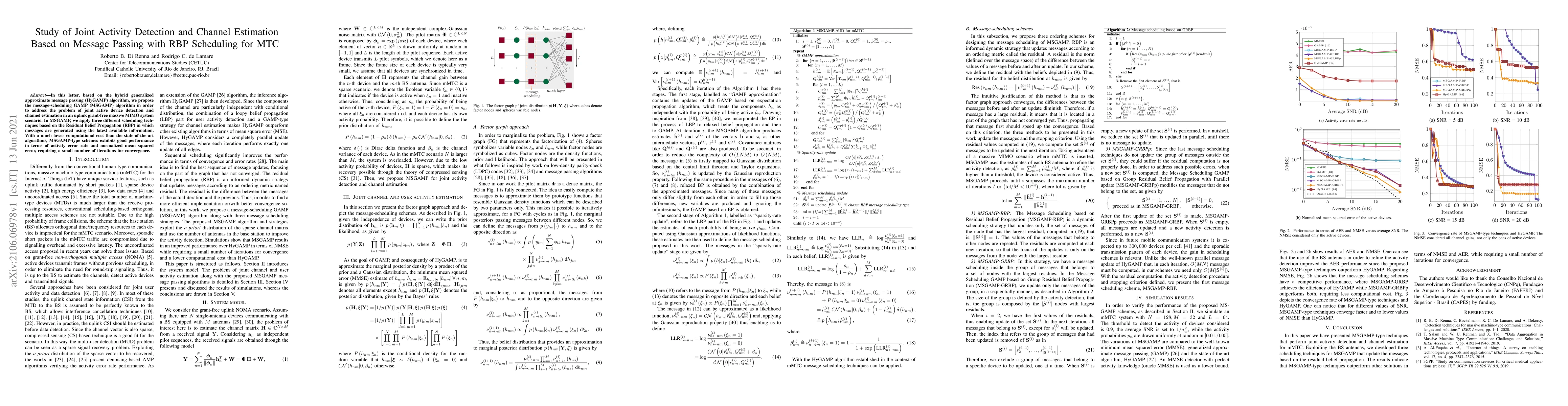 In this work, based on the hybrid generalized approximate message passing (HyGAMP) algorithm, we propose the message-scheduling GAMP (MSGAMP) algorithm in order to address the problem of joint active device detection and channel estimation in an uplink grant-free massive MIMO system scenario. In MSGAMP, we apply three different scheduling techniques based on the Residual Belief Propagation (RBP) in which messages are generated using the latest available information. With a much lower computational cost than the state-of-the-art algorithms, MSGAMP-type schemes exhibits good performance in terms of activity error rate and normalized mean squared error, requiring a small number of iterations for convergence. %