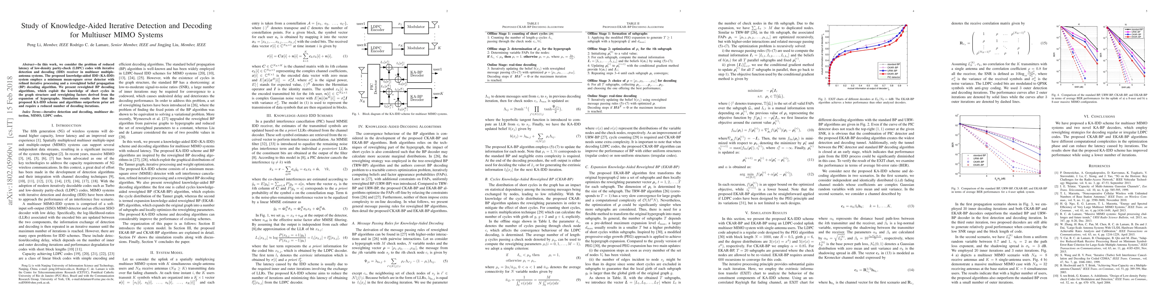 This paper proposes a knowledge-aided iterative detection and decoding (KA-IDD) system for multiuser MIMO systems, utilizing a minimum mean-square error detector and reweighted belief propagation decoding to reduce latency. Simulation results demonstrate improved performance and fewer decoding iterations compared to existing methods.