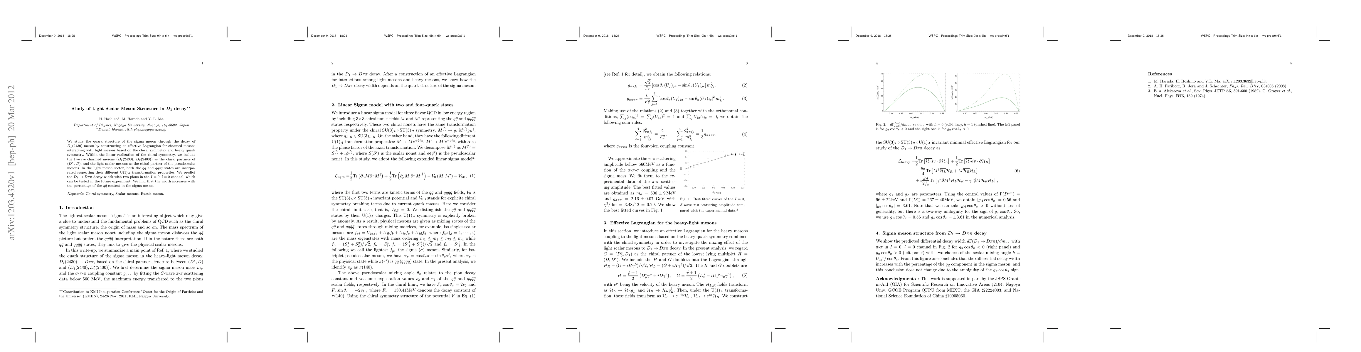 We study the quark structure of the sigma meson through the decay of $D_1(2430)$ meson by constructing an effective Lagrangian for charmed mesons interacting with light mesons based on the chiral symmetry and heavy quark symmetry. Within the linear realization of the chiral symmetry, we include the P-wave charmed mesons ($D_1(2430)$, $D_0(2400)$) as the chiral partners of ($D^\ast$, $D$), and the light scalar mesons as the chiral partner of the pseudoscalar mesons. In the light meson sector, both the $q\bar{q}$ and $qq\bar{q}\bar{q}$ states are incorporated respecting their different U(1)$_A$ transformation properties. We predict the $D_1 \to D\pi\pi$ decay width with two pions in the $I=0,\,l=0$ channel, which can be tested in the future experiment. We find that the width increases with the percentage of the $q\bar{q}$ content in the sigma meson.