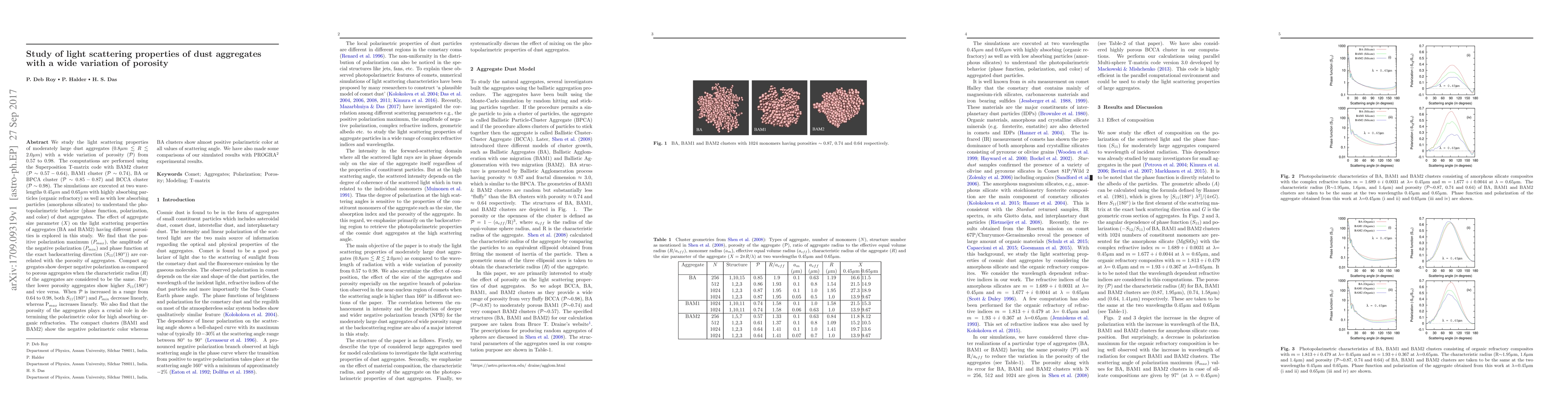 This study investigates the light scattering properties of dust aggregates with varying porosity using computational methods, finding that porosity significantly influences polarization and scattering behavior. The results show a linear relationship between porosity and scattering parameters, with compact aggregates exhibiting deeper negative polarization and higher backscattering compared to porous ones.