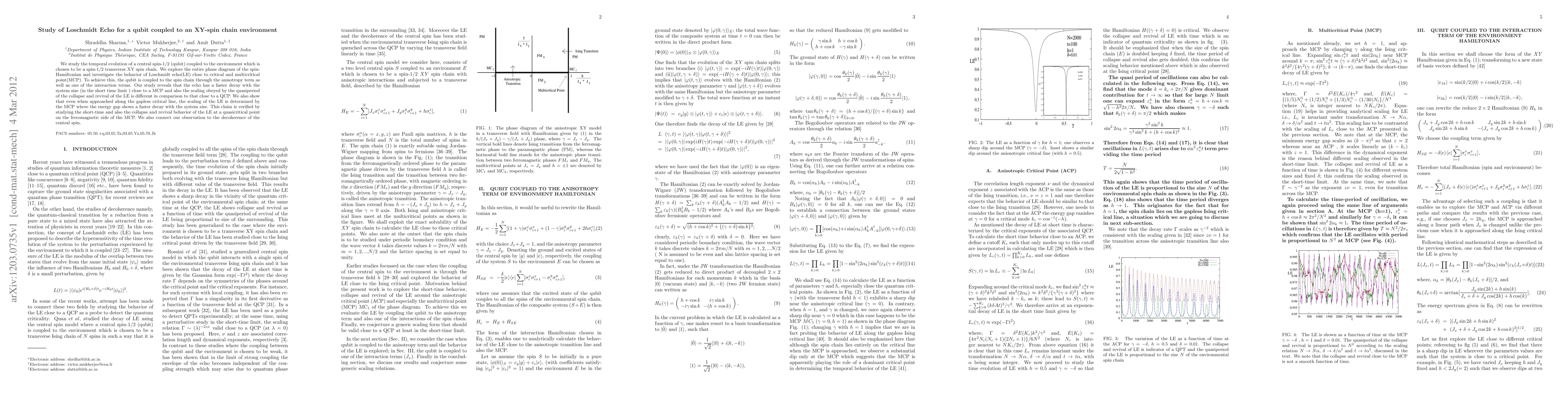 This study investigates the Loschmidt Echo (LE) for a qubit coupled to an XY-spin chain, revealing faster decay and distinct scaling near multicritical points compared to quantum critical points. The findings link the LE's behavior to the system's energy gap and decoherence.