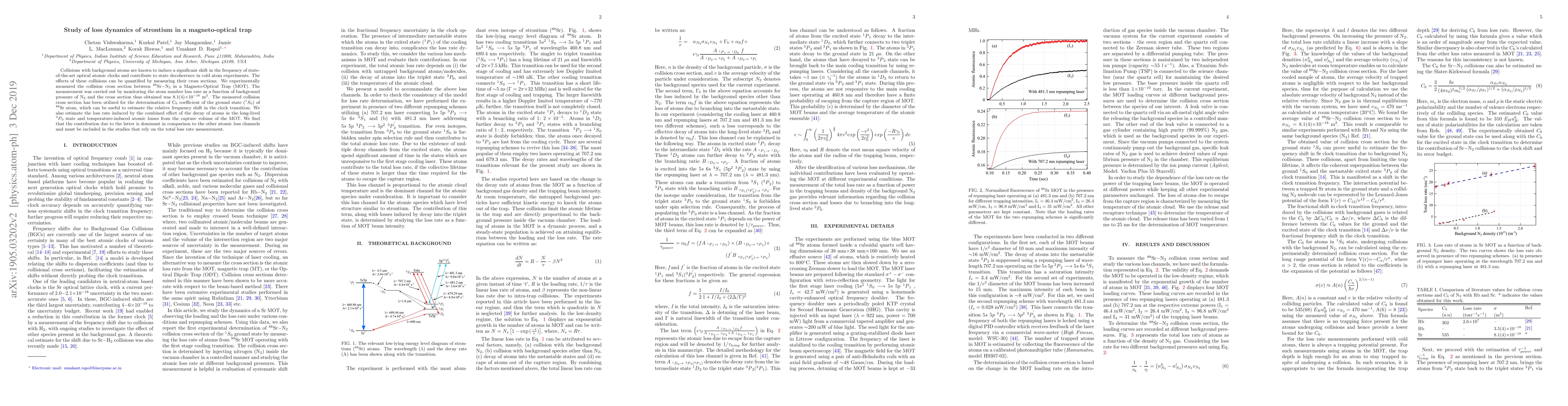 Collisions with background atoms are known to induce a significant shift in the frequency of state-of-the-art optical atomic clocks and contribute to state decoherence in cold atom experiments. The effects of these collisions can be quantified by measuring their cross sections. We experimentally measured the collision cross section between $^{88}$Sr$-$N$_{2}$ in a Magneto-Optical Trap (MOT). The measurement was carried out by monitoring the atom number loss rate as a function of background pressure of N$_{2}$ and the cross section thus obtained was 8.1(4)$\times 10^{-18}$ m$^{2}$. The measured collision cross section has been utilized for the determination of C$_{6}$ coefficient of the ground state (${^1S}_0$) of $^{88}$Sr atom, which can be useful to estimate the relative frequency shift in the clock transition. We also estimate the loss rate induced by the combined effect of the decay of atoms in the long-lived ${^3P}_0$ state and temperature-induced atomic losses from the capture volume of the MOT. We find that the contribution due to the latter is dominant in comparison to the other atomic loss channels and must be included in the studies that rely on the total loss rate measurement.