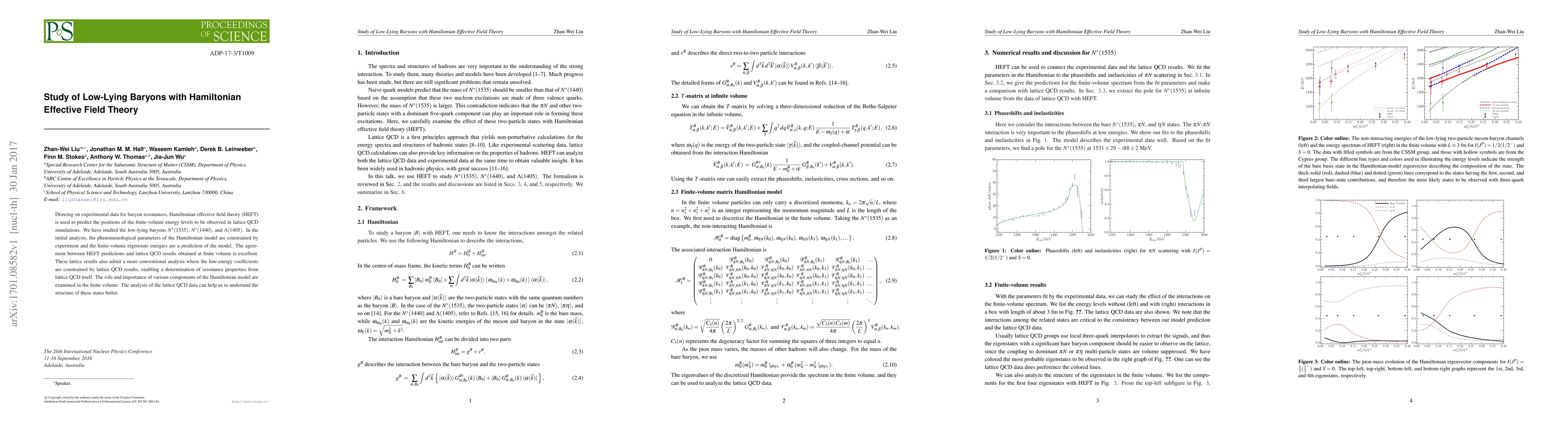 Researchers used Hamiltonian effective field theory to predict positions of low-lying baryons in lattice QCD simulations, achieving excellent agreement with experimental data.