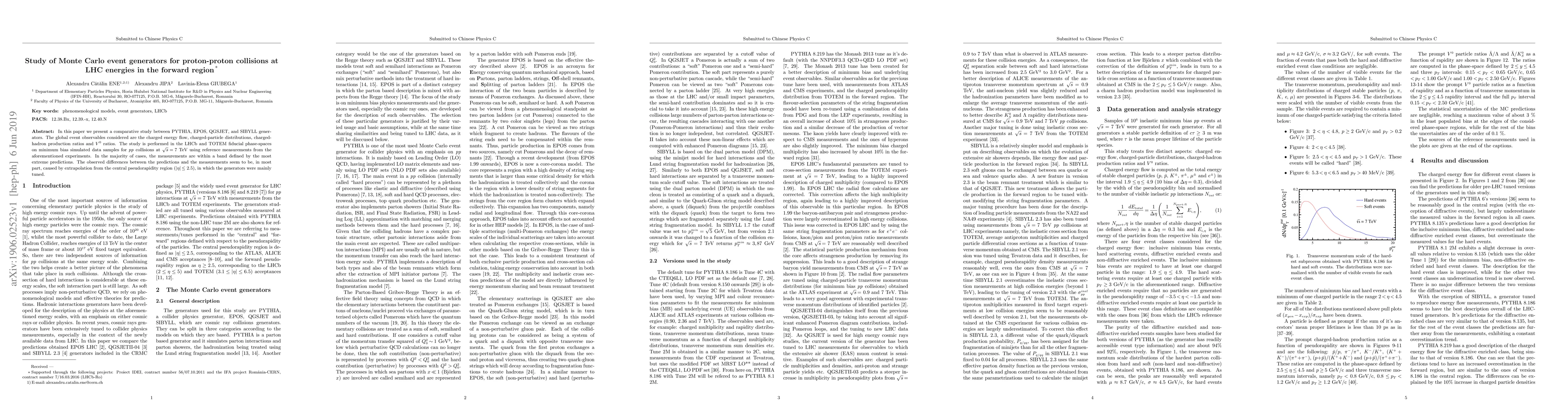 A study compares four proton-proton collision event generators to determine their accuracy in predicting particle distributions at LHC energies, finding that most differences arise from extrapolation beyond the central pseudorapidity region.
