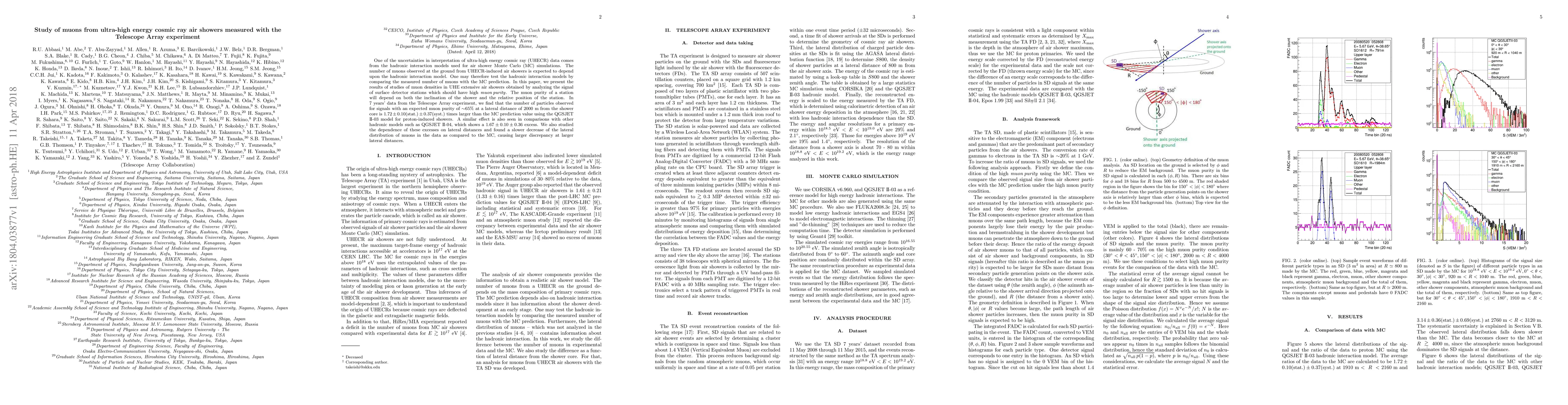 One of the uncertainties in interpretation of ultra-high energy cosmic ray (UHECR) data comes from the hadronic interaction models used for air shower Monte Carlo (MC) simulations. The number of muons observed at the ground from UHECR-induced air showers is expected to depend upon the hadronic interaction model. One may therefore test the hadronic interaction models by comparing the measured number of muons with the MC prediction. In this paper, we present the results of studies of muon densities in UHE extensive air showers obtained by analyzing the signal of surface detector stations which should have high $\it{muon \, purity}$. The muon purity of a station will depend on both the inclination of the shower and the relative position of the station. In 7 years' data from the Telescope Array experiment, we find that the number of particles observed for signals with an expected muon purity of $\sim$65% at a lateral distance of 2000 m from the shower core is $1.72 \pm 0.10{\rm (stat.)} \pm 0.37 {\rm (syst.)}$ times larger than the MC prediction value using the QGSJET II-03 model for proton-induced showers. A similar effect is also seen in comparisons with other hadronic models such as QGSJET II-04, which shows a $1.67 \pm 0.10 \pm 0.36$ excess. We also studied the dependence of these excesses on lateral distances and found a slower decrease of the lateral distribution of muons in the data as compared to the MC, causing larger discrepancy at larger lateral distances.