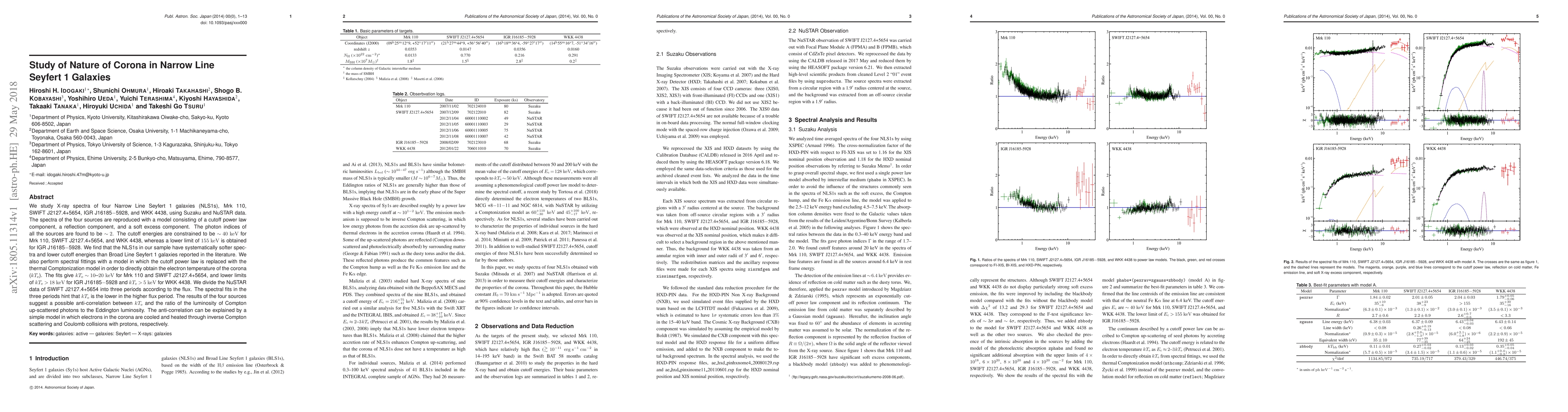 We study X-ray spectra of four Narrow Line Seyfert 1 galaxies (NLS1s), Mrk 110, SWIFT J2127.4+5654, IGR J16185-5928, and WKK 4438, using Suzaku and NuSTAR data. The spectra of the four sources are reproduced with a model consisting of a cutoff power law component, a reflection component, and a soft excess component. The photon indices of all the sources are found to be ~ 2. The cutoff energies are constrained to be ~ 40 keV for Mrk 110, SWIFT J2127.4+5654, and WKK 4438, whereas a lower limit of 155 keV is obtained for IGR J16185-5928. We find that the NLS1s in our sample have systematically softer spectra and lower cutoff energies than Broad Line Seyfert 1 galaxies reported in the literature. We also perform spectral fittings with a model in which the cutoff power law is replaced with the thermal Comptonization model in order to directly obtain the electron temperature of the corona (kTe). The fits give kTe ~ 10-20 keV for Mrk 110 and SWIFT J2127.4+5654, and lower limits of kTe > 18 keV for IGR J16185-5928 and kTe > 5 keV for WKK 4438. We divide the NuSTAR data of SWIFT J2127.4+5654 into three periods according to the flux. The spectral fits in the three periods hint that kTe is the lower in the higher flux period. The results of the four sources suggest a possible anti-correlation between kTe and the ratio of the luminosity of Compton up-scattered photons to the Eddington luminosity. The anti-correlation can be explained by a simple model in which electrons in the corona are cooled and heated through inverse Compton scattering and Coulomb collisions with protons, respectively.