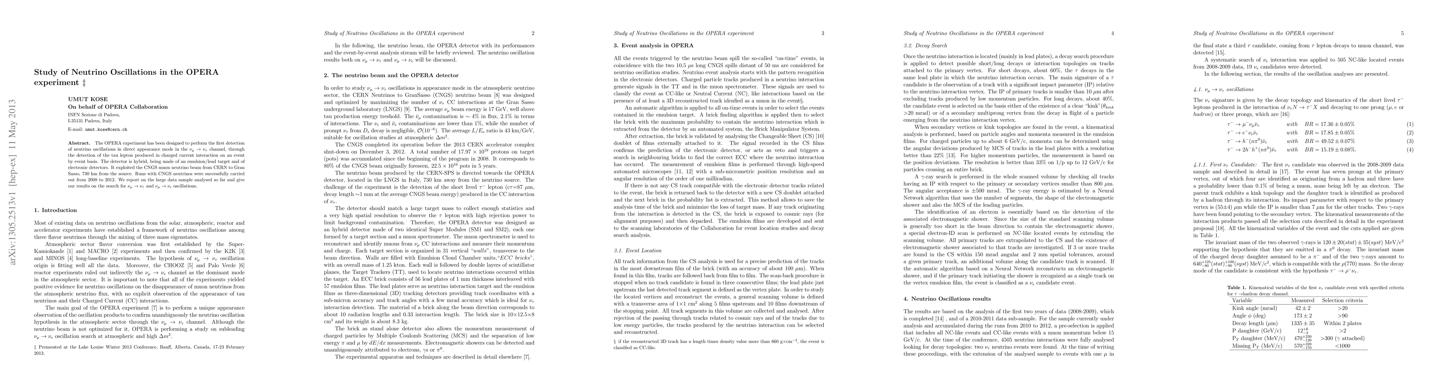 The OPERA experiment successfully detected the first direct evidence of $\nu_{\mu}\to\nu_{\tau}$ neutrino oscillations using a hybrid detector and a long-baseline neutrino beam from CERN to Gran Sasso. The results provide significant insights into neutrino oscillation phenomena.