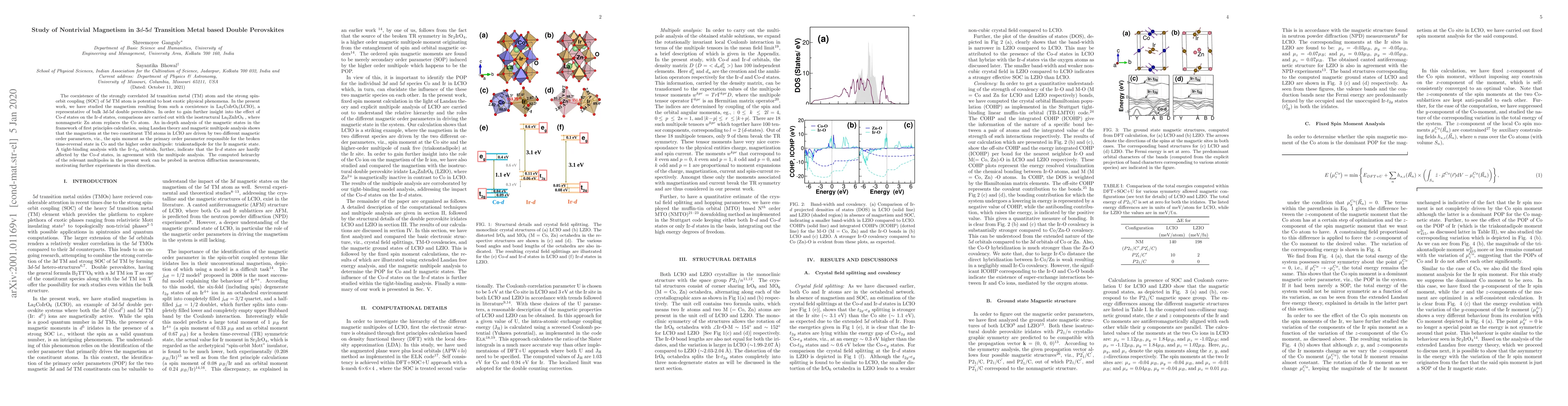 Researchers study magnetism in a type of material called double perovskites, finding that it arises from two different magnetic order parameters at the transition metal atoms, with one affecting the spin moment and the other a higher-order multipole.