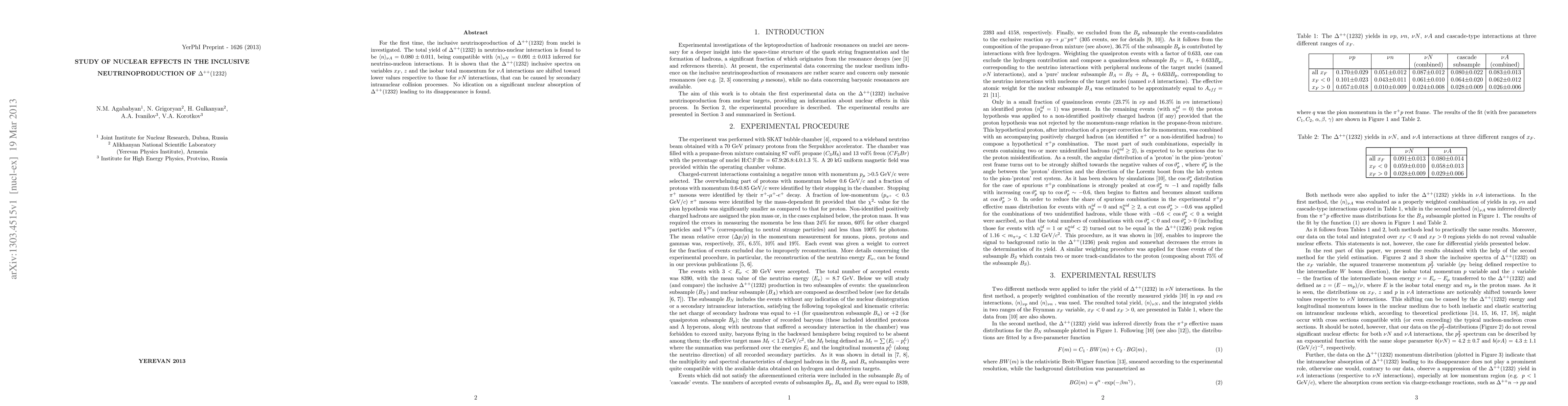 This study investigates, for the first time, the inclusive neutrinoproduction of the Δ++(1232) isobar from nuclei, finding a total yield of <n>_νA = 0.080±0.011, comparable to <n>_νN = 0.091±0.013 for neutrino-nucleon interactions. The observed shifts in Δ++(1232) spectra in nuclear interactions suggest secondary intranuclear collision effects, with no evidence of significant nuclear absorption.