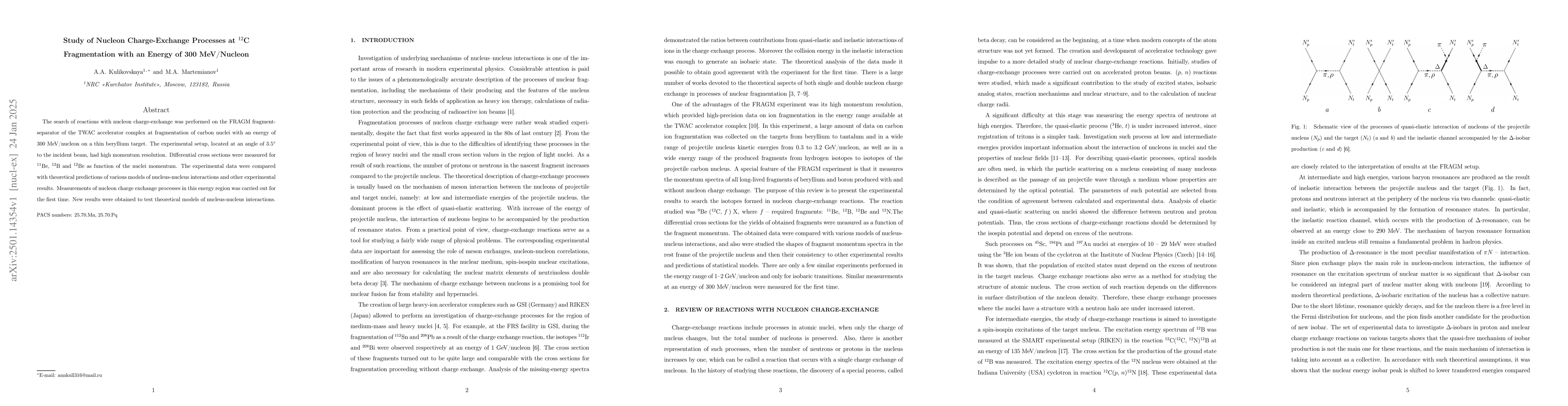 This study investigates nucleon charge-exchange reactions at 300 MeV/nucleon using carbon nuclei fragmentation on a beryllium target, with measurements of differential cross sections for $^{11}$Be, $^{12}$B, and $^{12}$Be. The experimental data were compared with theoretical models and prior results, providing new insights into nucleus-nucleus interactions.