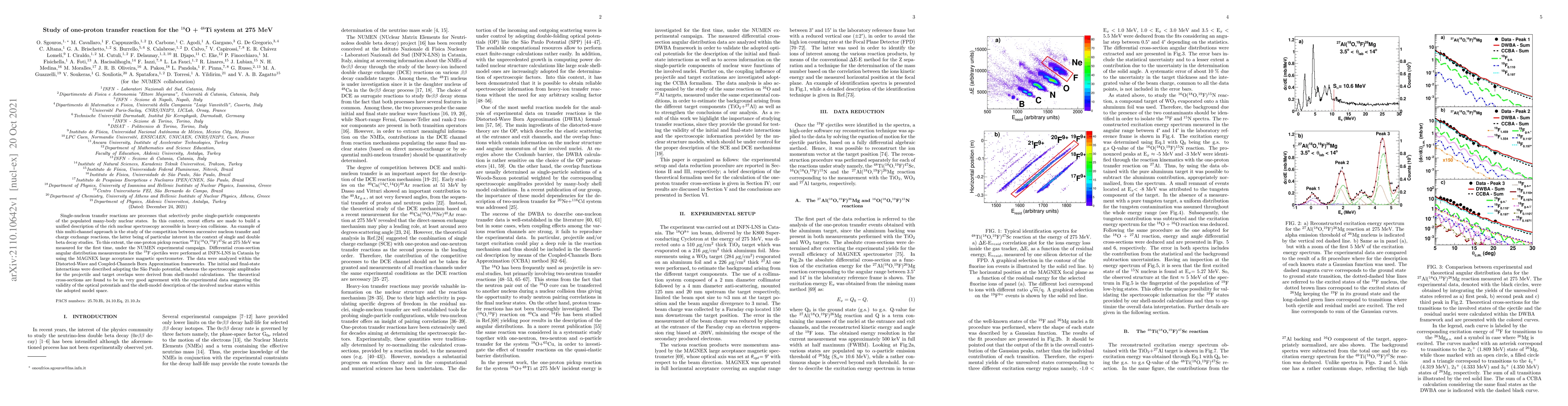 This study investigates the one-proton transfer reaction between $^{18}$O and $^{48}$Ti at 275 MeV, measured for the first time using the MAGNEX spectrometer at INFN-LNS. Theoretical cross-sections, derived from distorted-wave and coupled-channels Born approximation within S~ao Paulo potential, align well with experimental data, validating the potential and shell-model description of nuclear states.