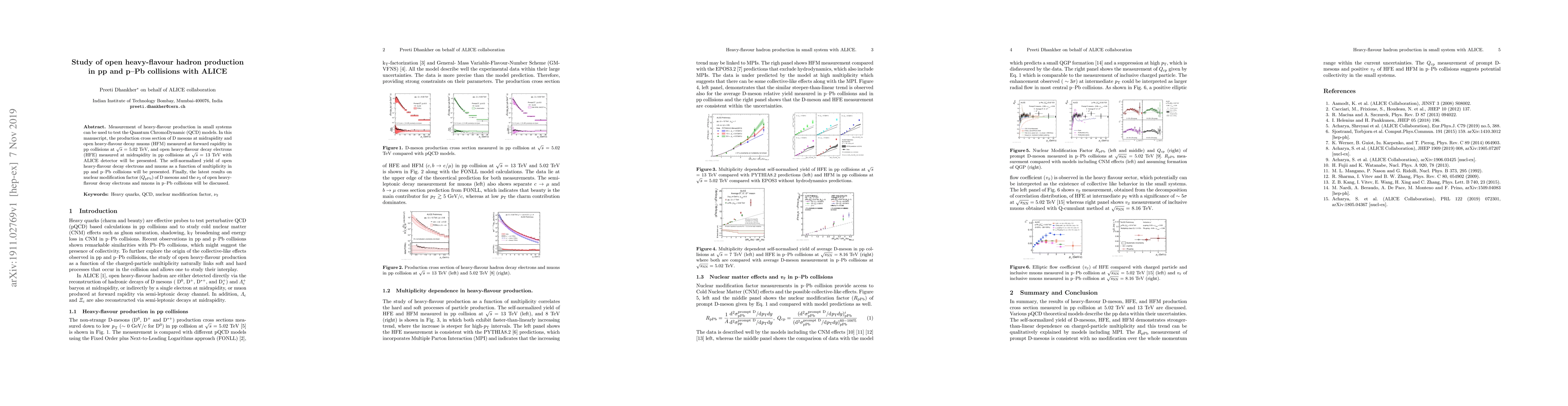 Measurement of heavy-flavour production in small systems can be used to test the Quantum ChromoDynamic (QCD) models. In this manuscript, the production cross section of D mesons at midrapidity and open heavy-flavour decay muons (HFM) measured at forward rapidity in pp collisions at $\sqrt{s}$ = 5.02 TeV, and open heavy-flavour decay electrons (HFE) measured at midrapidity in pp collisions at $\sqrt{s}$ = 13 TeV with ALICE detector will be presented. The self-normalized yield of open heavy-flavour decay electrons and muons as a function of multiplicity in pp and p$-$Pb collisions will be presented. Finally, the latest result on nuclear modification factor ($Q_{\rm pPb}$) of D mesons and the $\nu_{2}$ of open heavy-flavour decay electrons and muons in p$-$Pb collisions will be discussed.