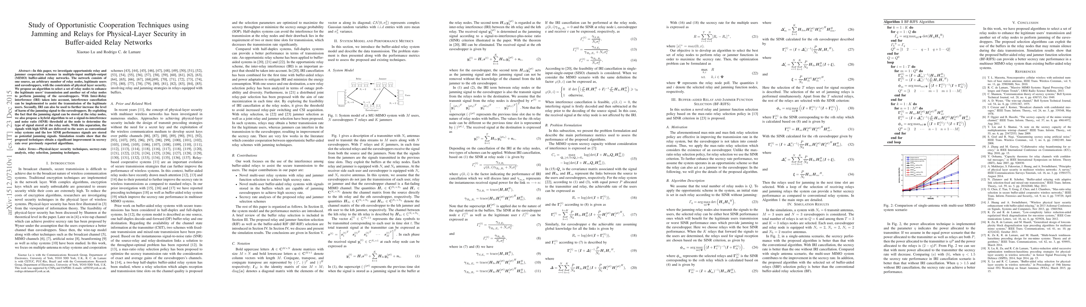 This paper explores cooperative relay and jamming strategies in MIMO buffer-aided relay networks for physical-layer security, proposing an algorithm to select relay nodes for legitimate transmission and jamming to eavesdroppers, achieving significant secrecy rate improvements over existing methods.