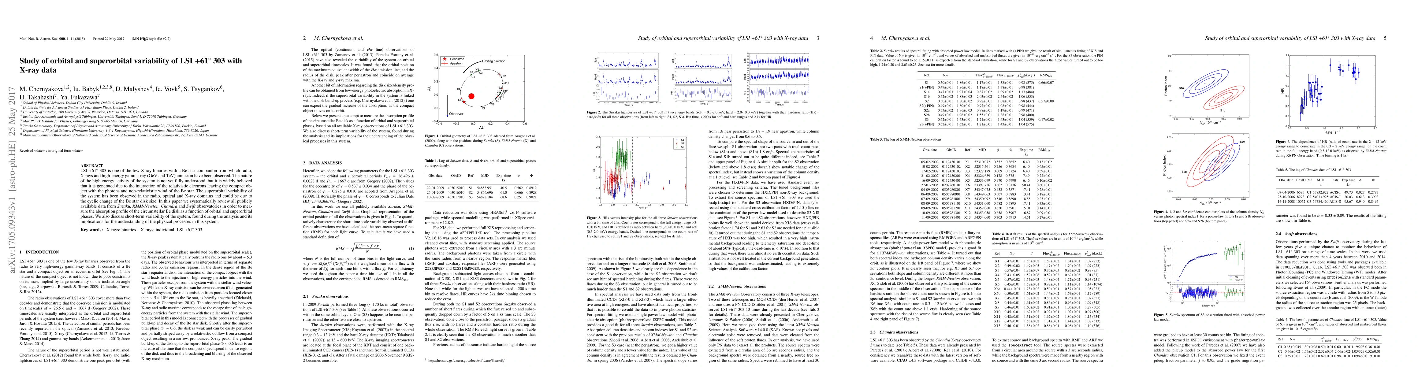 LSI +61 303 is one of the few X-ray binaries with a Be star companion from which radio, X-rays and high-energy gamma-ray (GeV and TeV) emission have been observed. The nature of the high energy activity of the system is not yet fully understood, but it is widely believed that it is generated due to the interaction of the relativistic electrons leaving the compact object with the photons and non-relativistic wind of the Be star. The superorbital variability of the system has been observed in the radio, optical and X-ray domains and could be due to the cyclic change of the Be star disk size. In this paper we systematically review all publicly available data from Suzaku, XMM-Newton, Chandra and Swift observatories in order to measure the absorption profile of the circumstellar Be disk as a function of orbital and superorbital phases. We also discuss short-term variability of the system, found during the analysis and its implications for the understanding of the physical processes in this system.